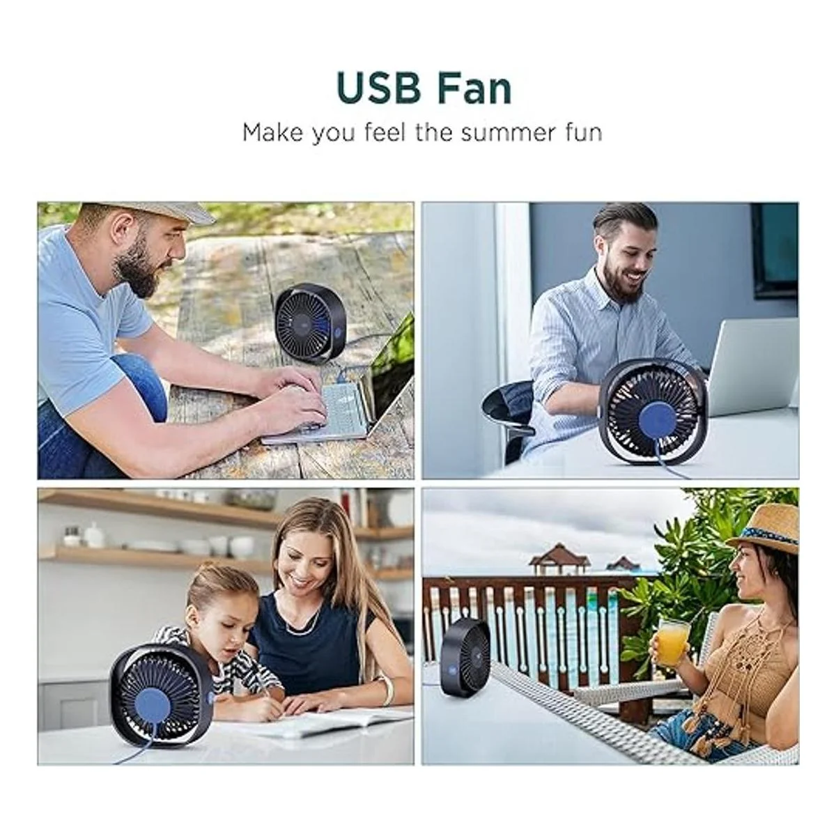EasyAcc Ventilador de escritorio USB, mini ventilador USB de 3 velocidades, pequeño y silencioso y potente, ventilador de escritorio portátil USB, ventilador de mesa de escritorio personal giratorio de 360, ventilador de viaje para escritorio, hogar, dormitorio, oficina, azul, cable de 4 pies