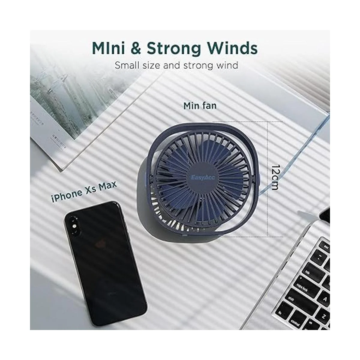 Mini ventilador USB portátil Solo 6 onzas Necesitas un pequeño ventilador para la oficina No más espacio en el escritorio Recomendamos el mini ventilador de escritorio EasyAcc 4.8 pulgadas Es ideal para el hogar, oficina, dormitorio, también portátil para llevar fuera necesita energía para viajes, camping.