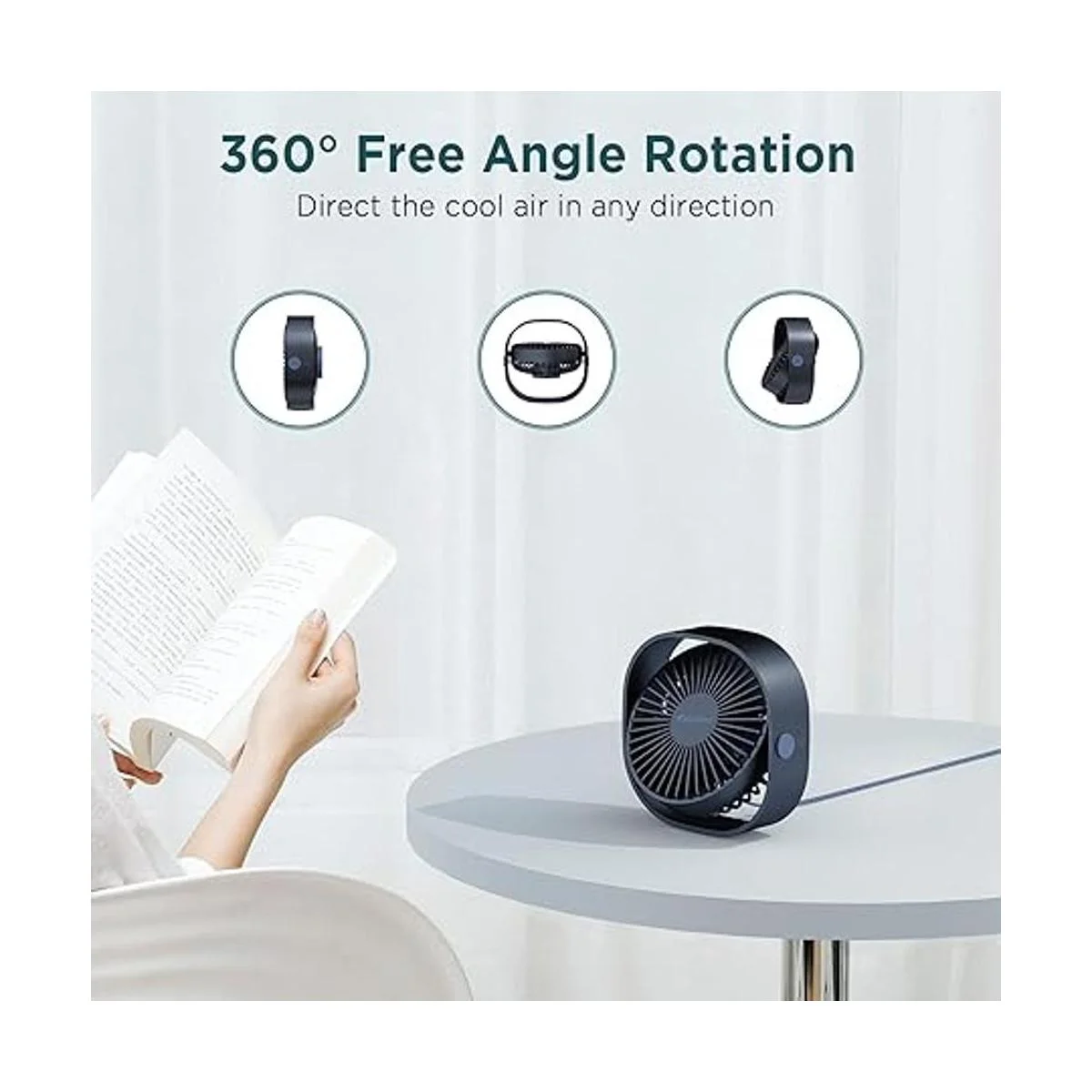 Diseño práctico El ventilador personal EasyAcc puede girar 360 grados hacia arriba y hacia abajo, libre de dirigir el flujo de aire donde quieras. La base antideslizante garantiza que el ventilador de escritorio USB pueda mantenerse estable en el escritorio y disminuir el ruido cuando se utiliza.