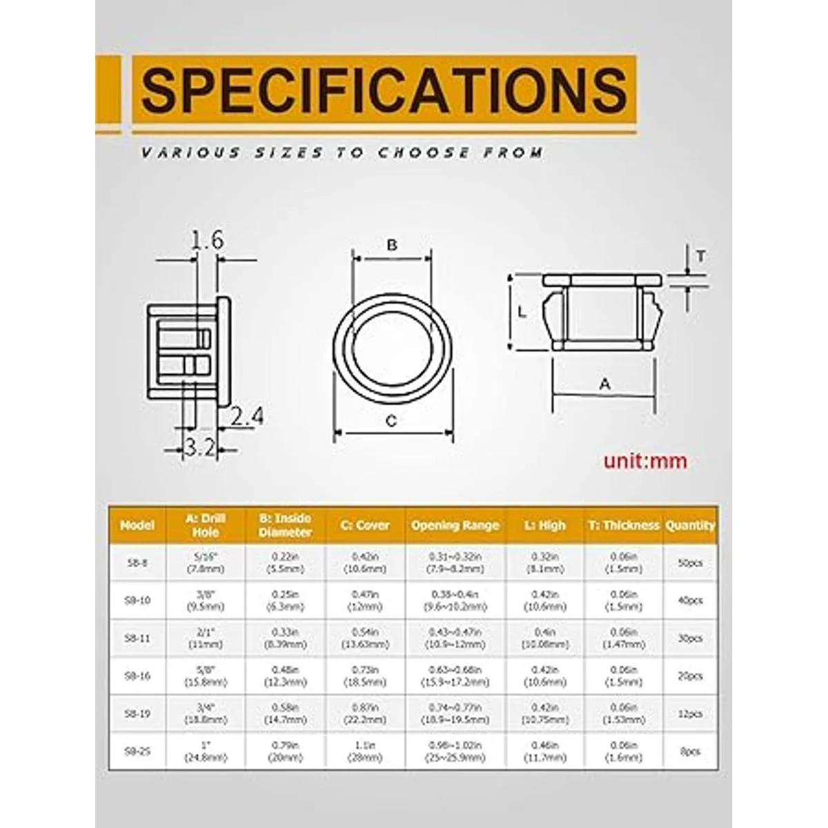 Ventaja: la instalación de los tapones de agujero de bloqueo de panel redondo es más rápida y fácil; la presión de la punta de los dedos encaja el buje en su agujero de instalación, fácil de instalar, es una opción ideal para tu vida y trabajo.