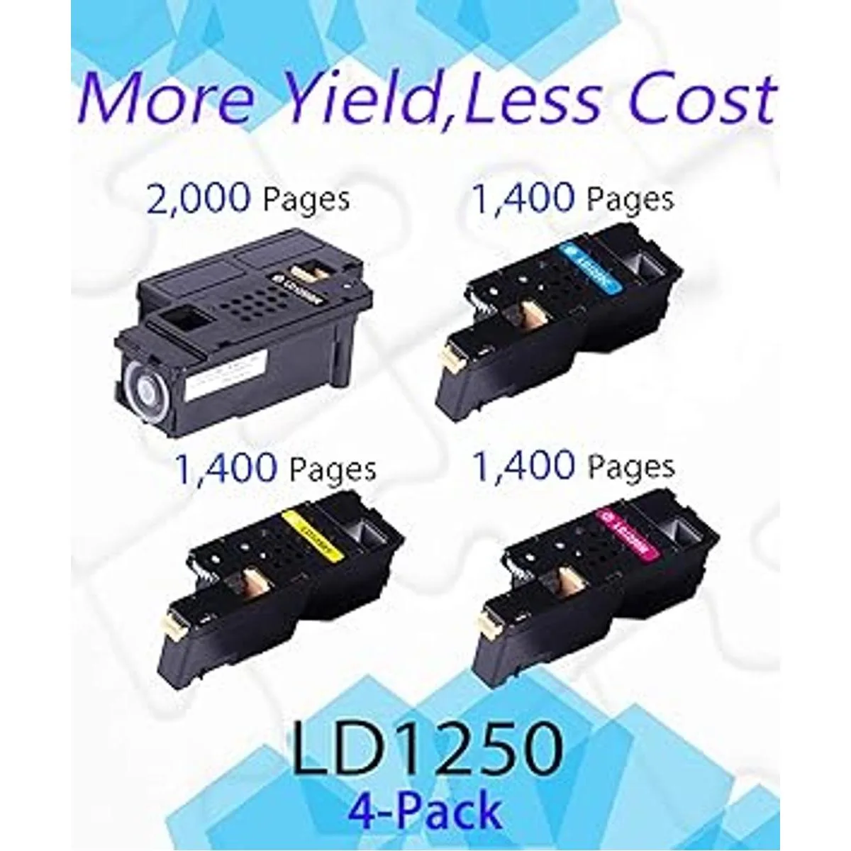 Contenido del paquete: juego de 4 cartuchos de tóner compatibles con Dell 1250 1 paquete Dell 3K9XM / 3310778 negro, 1 paquete Dell FYFKF / 3310777 cian, 1 paquete Dell DG1TR / 3310779 amarillo, 1 paquete Dell 5GDTC / 33100 780 Mag. enta
