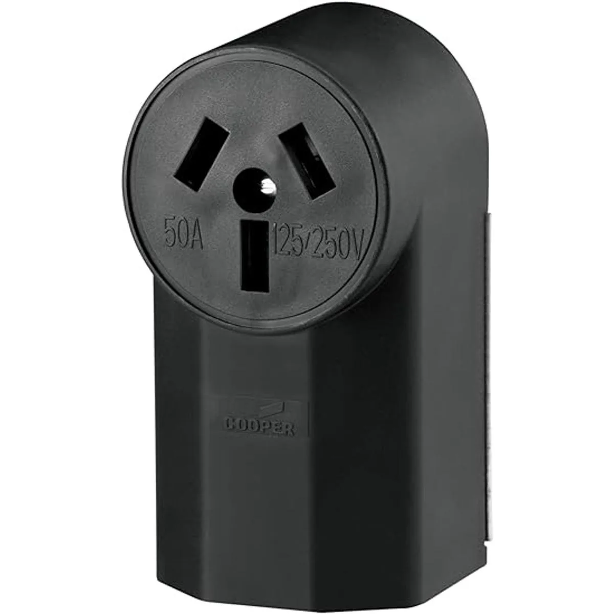 Eaton WD112 50 amperios 125 voltios 2 polos 3 cables receptáculo de potencia de rango de montaje en superficie, negro