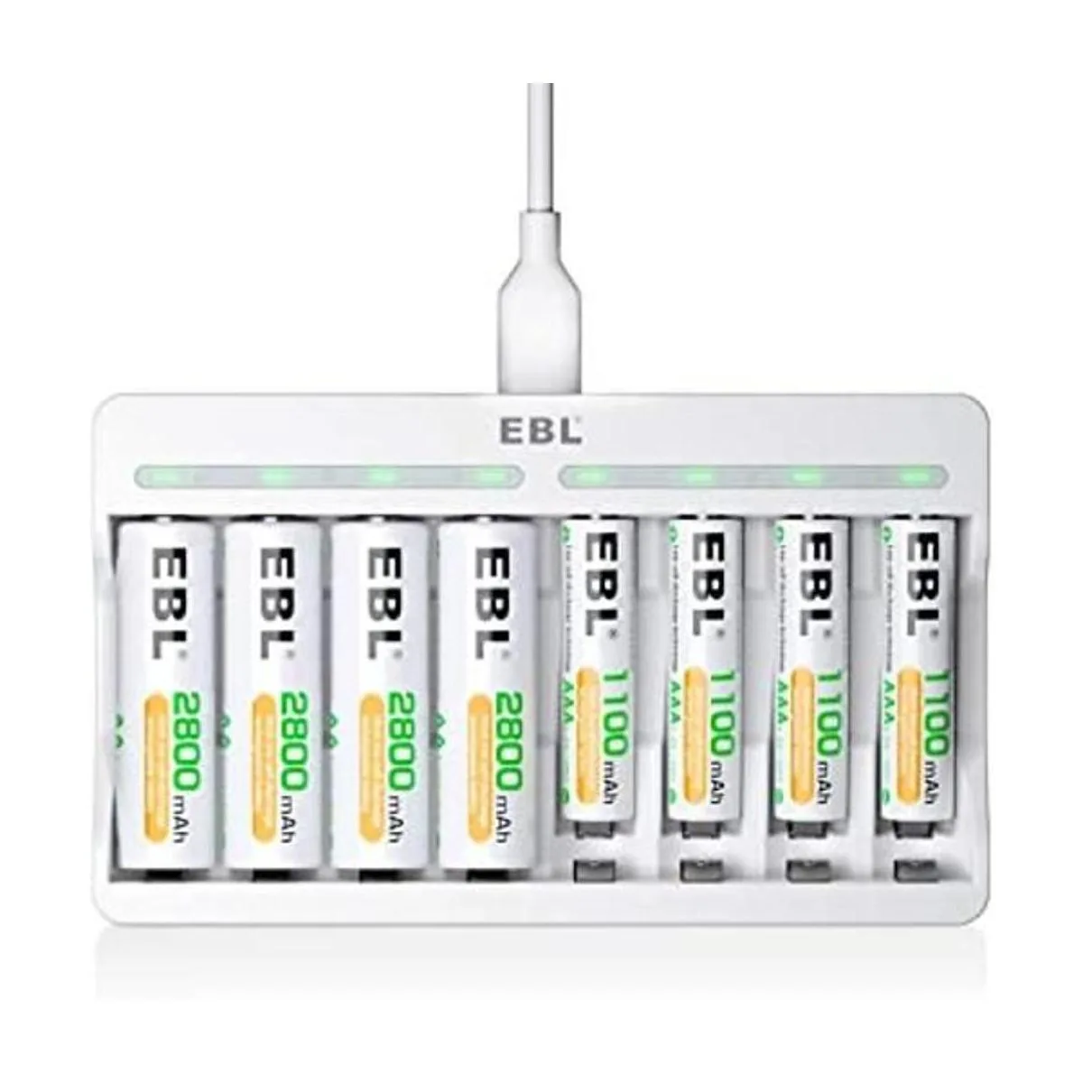 EBL Baterías AA recargables de 2800 mAh (paquete de 4) y pilas recargables AAA NiMH de 1100 mAh (paquete de 4) con cargador de batería individual AA AAA de 8 bahías