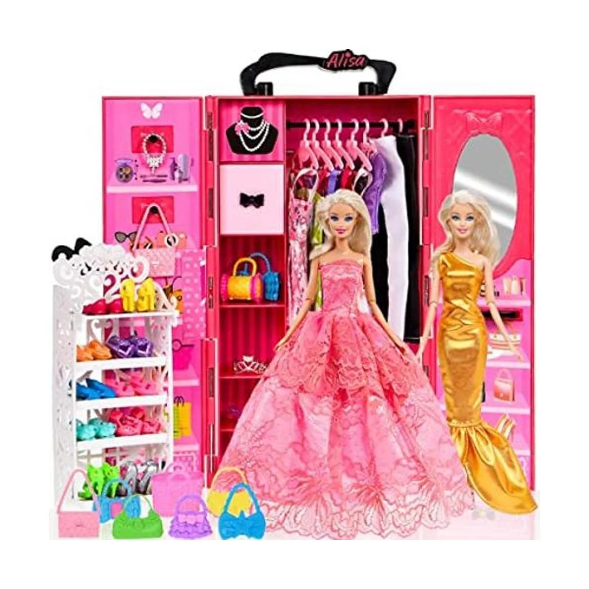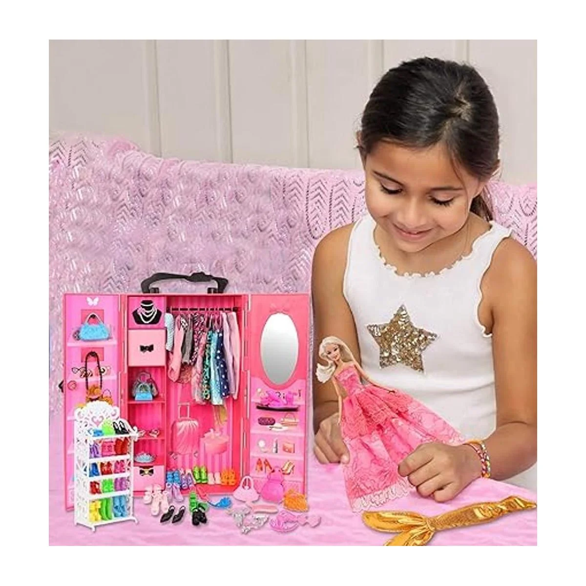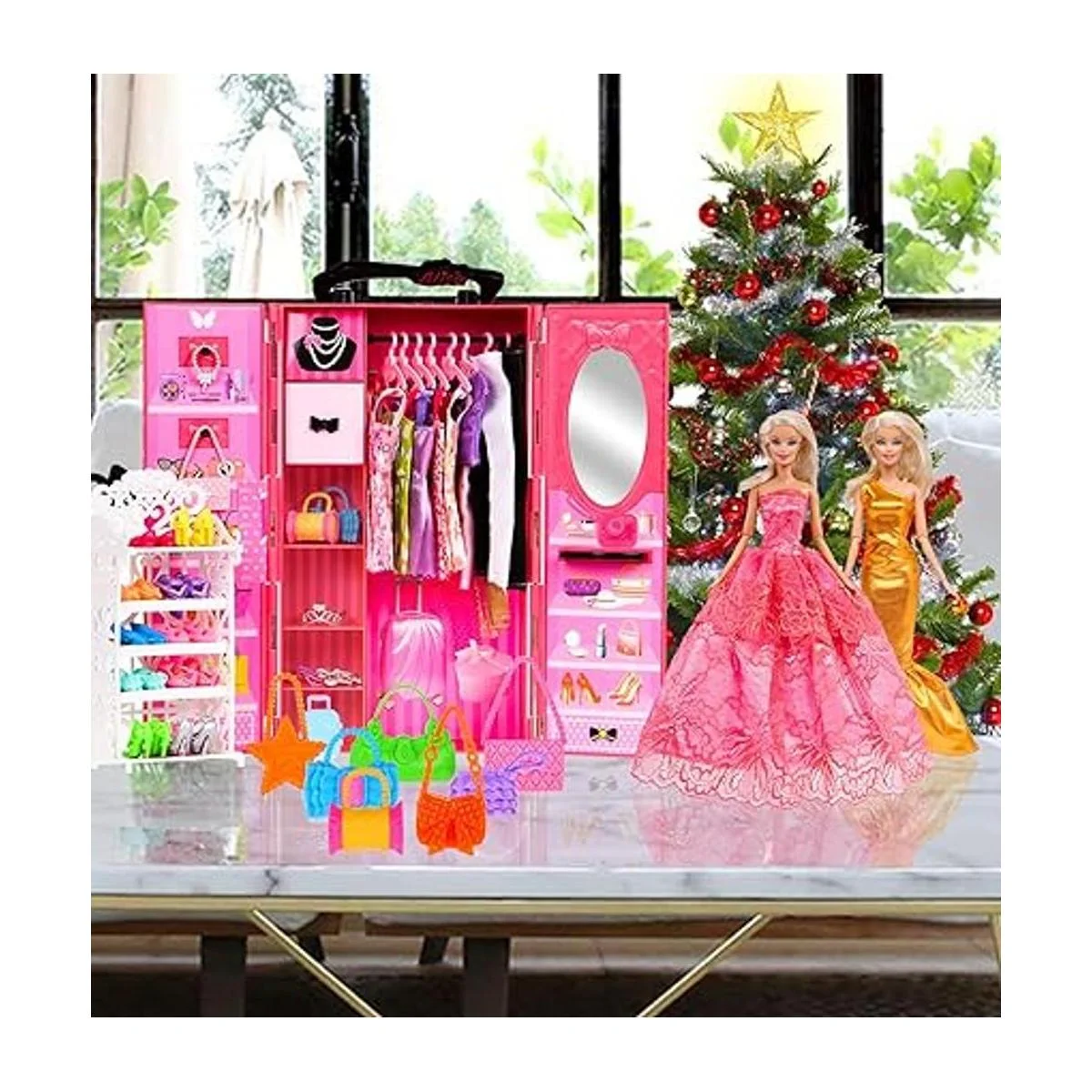 ebuddy Lote de moda de 105 artículos de 11.5 pulgadas para muñeca de niña, armario de ensueño con ropa y accesorios, incluyendo armario, zapatero de vestir, perchas para zapatos, collar y otros accesorios sin muñeca