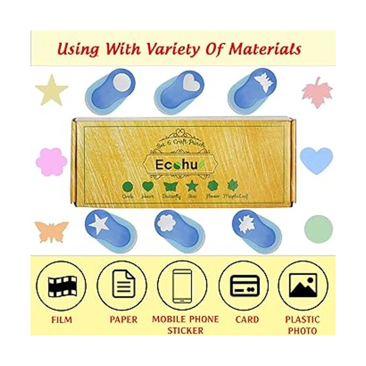 ECOHU Juego de 6 perforadores para manualidades de 1 pulgada, perforadores para manualidades, corazón, círculo, estrella, mariposa, hoja de arce, juegos de perforadores de papel de flores para proyectos de manualidades y bricolaje. juego de 6