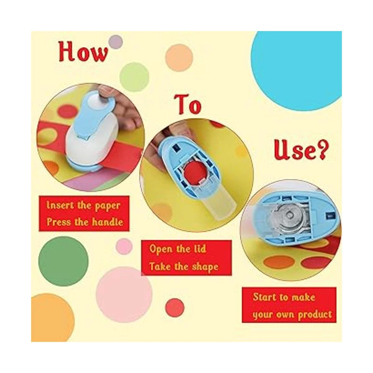 Crea tu propio diseño: puedes hacer diferentes obras de arte de acuerdo a tu imaginación, una opción perfecta para que los niños desarrollen sus mentes, nuestro perforador circular es adecuado para obras de arte, manualidades, decorar tu diario, álbum de fotos, sobres, tarjetas de felicitación, envoltura de regalos y muchos otros productos de papel hechos a mano.