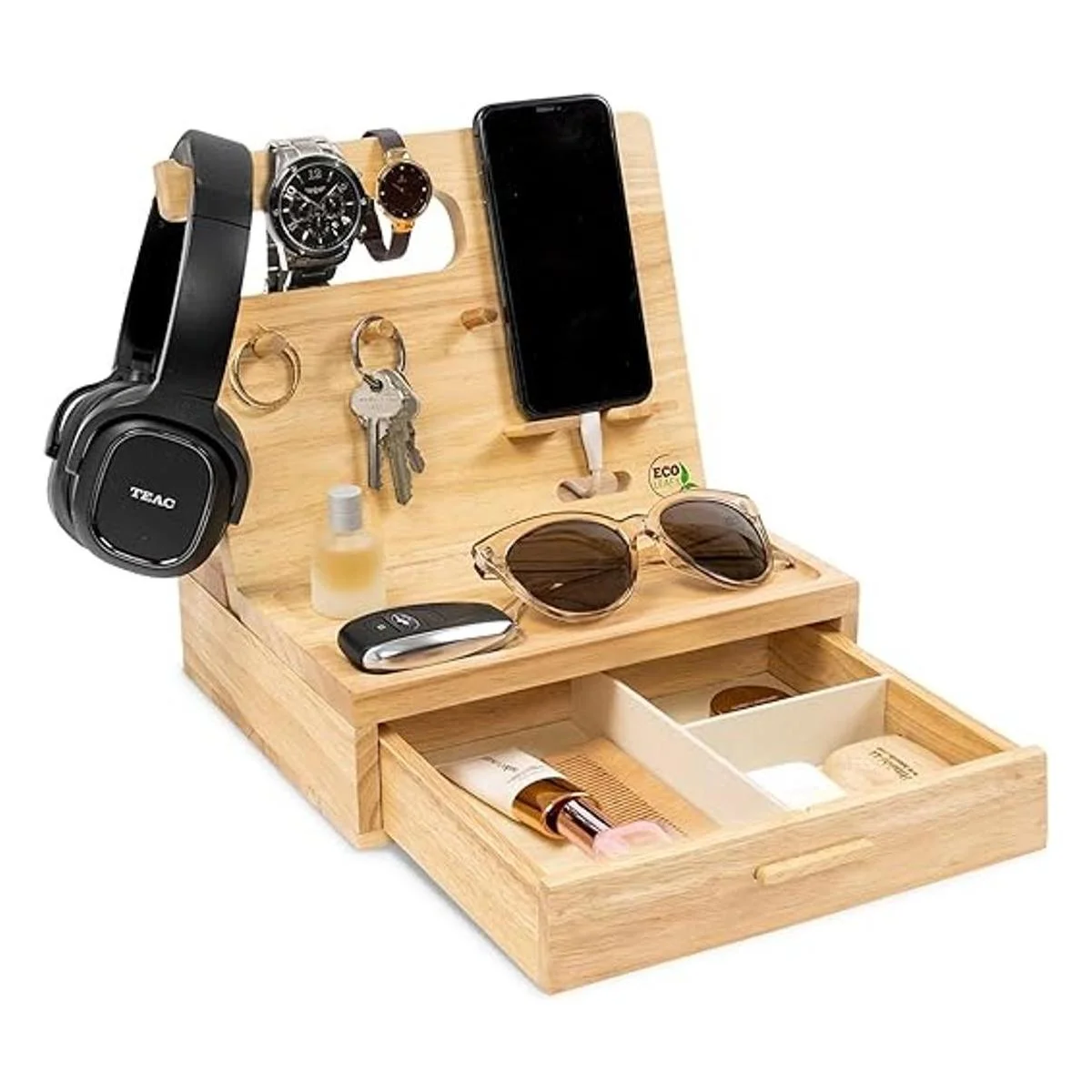 Regalo perfecto: cómpralo como un regalo para tu marido, cumpleaños, esposa, madre o para ti mismo como regalo técnico. Comienza a vivir una vida más consciente, minimalista y organizada con tu nueva estación de carga de madera.