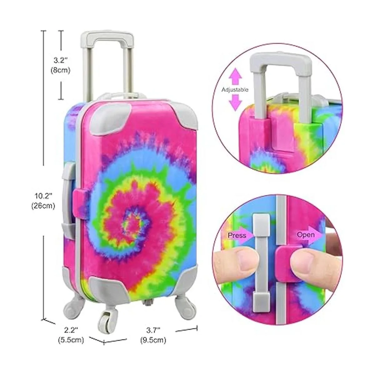 Lo que se ajusta: los bonitos accesorios de maleta son muy adecuados para muñecas americanas de 18 pulgadas, es la opción perfecta para comprar como accesorios de muñeca de 18 pulgadas. Tu hijo puede simular viajar junto con sus muñecas ya sea al aire libre o en interiores.