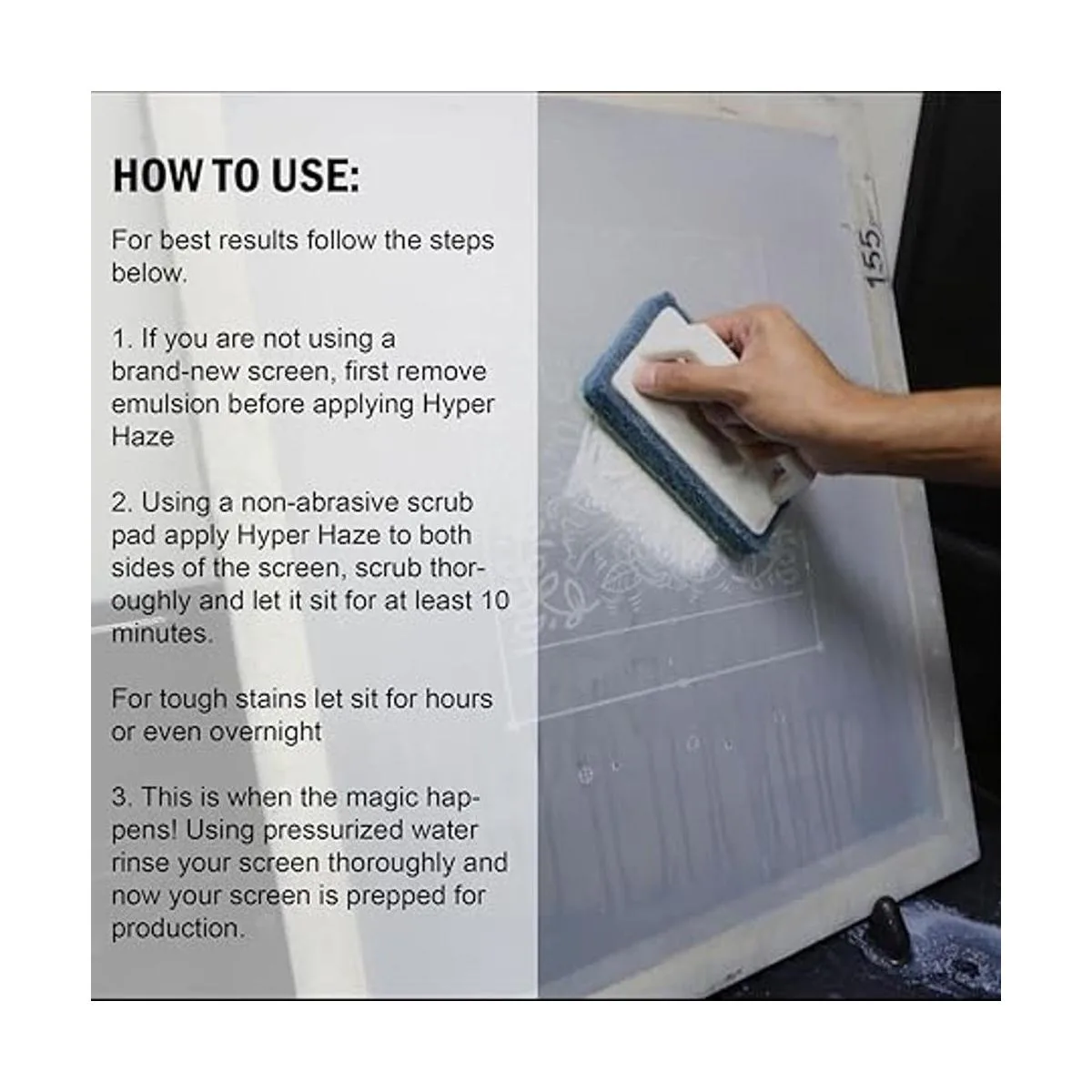 Listo para usar: diseñado para todo tipo de sistemas de tinta de serigrafía. Tinta a base de agua o tinta plastisol, la hiperneblina los limpia todos con poco esfuerzo. No necesita mezclar productos químicos adicionales o pasos adicionales.