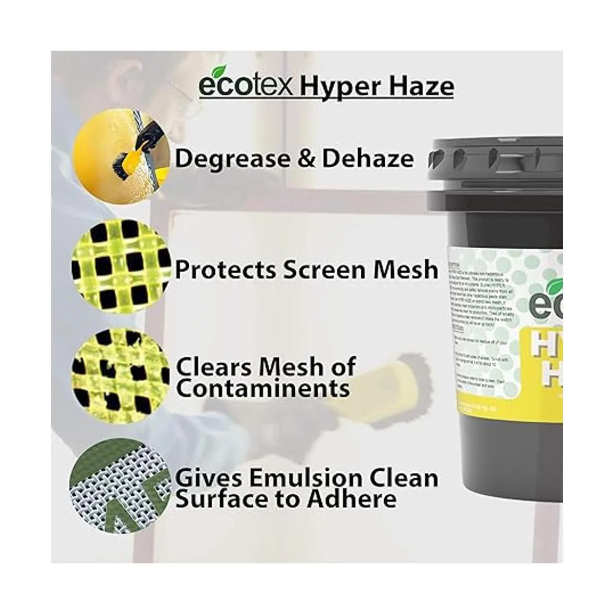 Ecotex Serigrafía multiusos Hyper Haze galón 128 onzas, removedor de neblina y desengrasante ecológico, plastisol y removedor de tinta a base de agua, limpiador de serigrafía para serigrafía