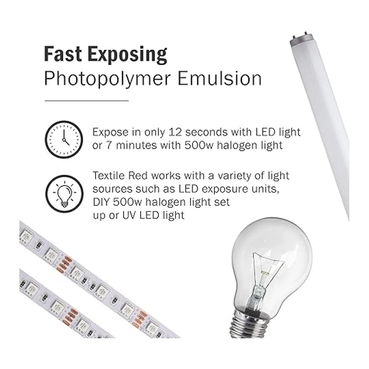 Ecotex TexRed Emulsión de serigrafía pinta 16 onzas Emulsión fotográfica presensibilizada para serigrafías y telas para tintas de plastisol serigrafiadas, suministros de serigrafía de fotopolímero puro