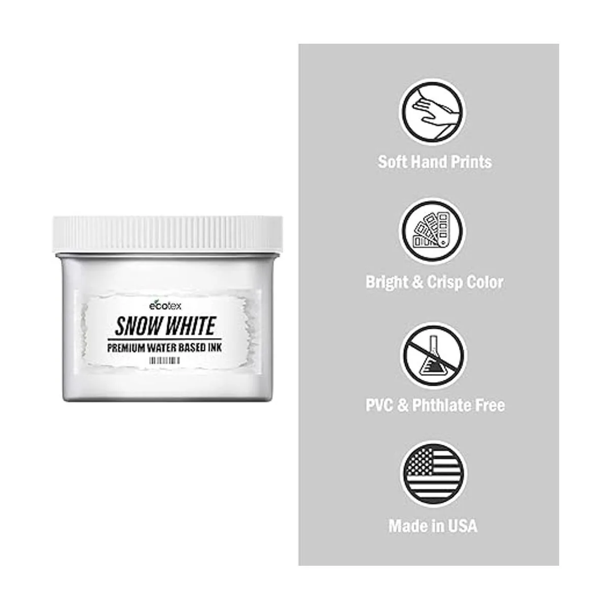 Ecotex Tinta de serigrafía a base de agua blanca nieve 8 onzas, tinta de tela, tinta de serigrafía de seda, tinta de tela suave o tinta de serigrafía para impresión de camisas, suministros de serigrafía para kit de serigrafía