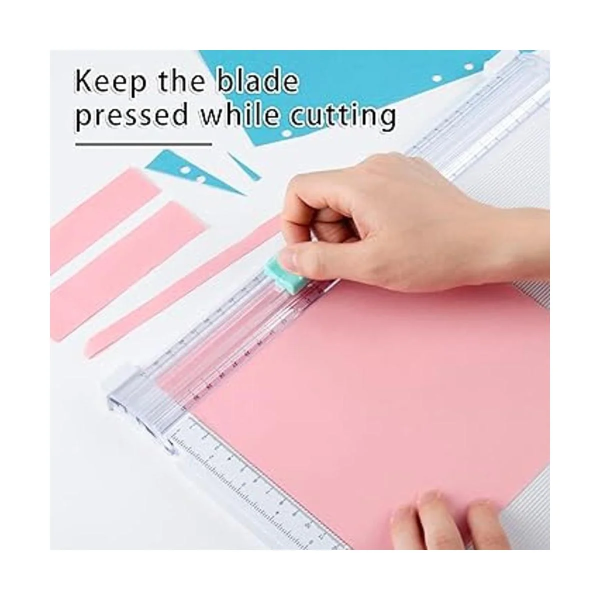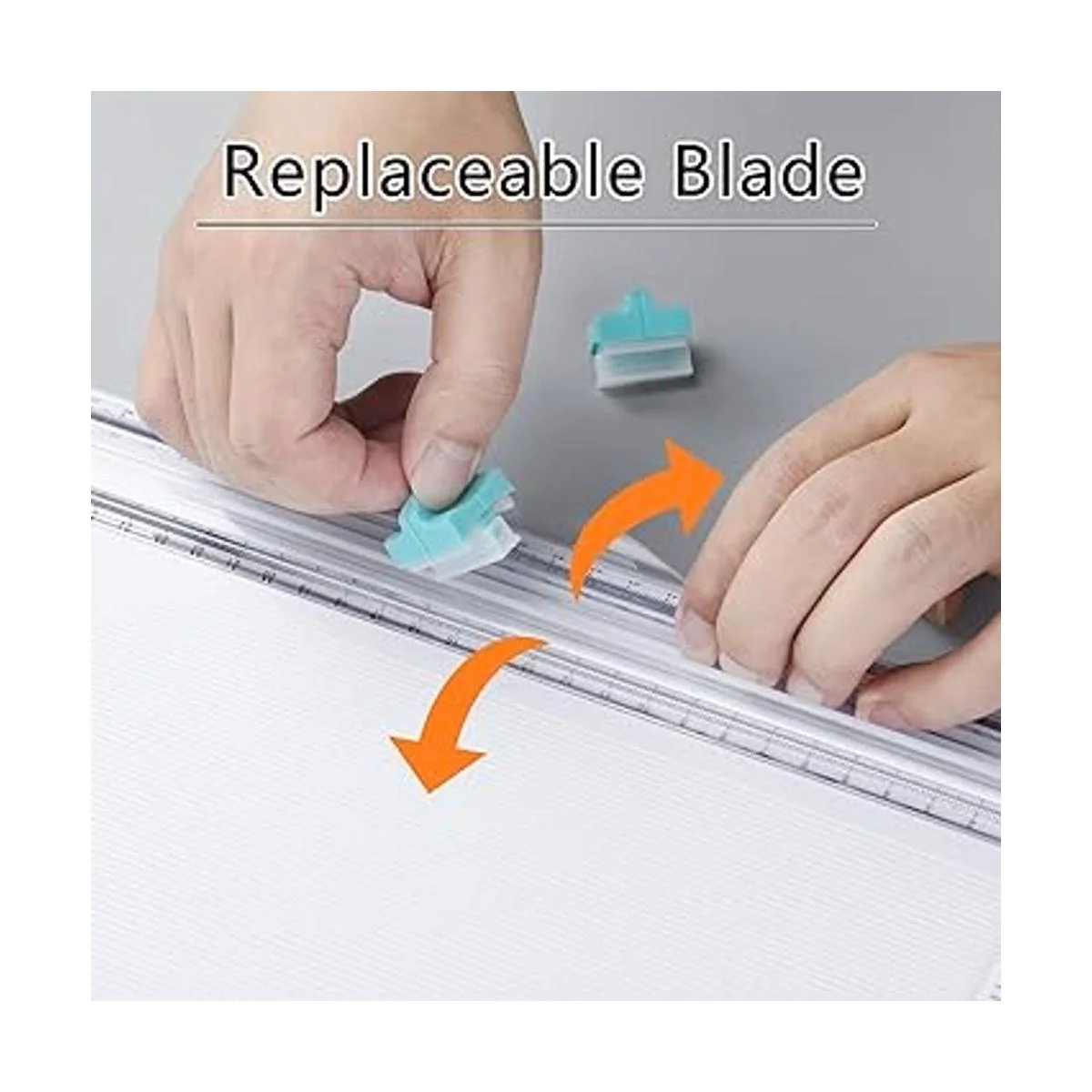 Pliega el papel y materiales de corte Las herramientas de arrugas marcan líneas impecables y nítidas en segundos al crear invitaciones, sobres, cajas de regalo y mucho más. La regla guía transparente hace que sea fácil cortar a lo largo de la línea recta, sin arrastre, muy limpia El material de la hoja es de dureza y muy afilado, corte máximo 12 hojas de papel cada vez