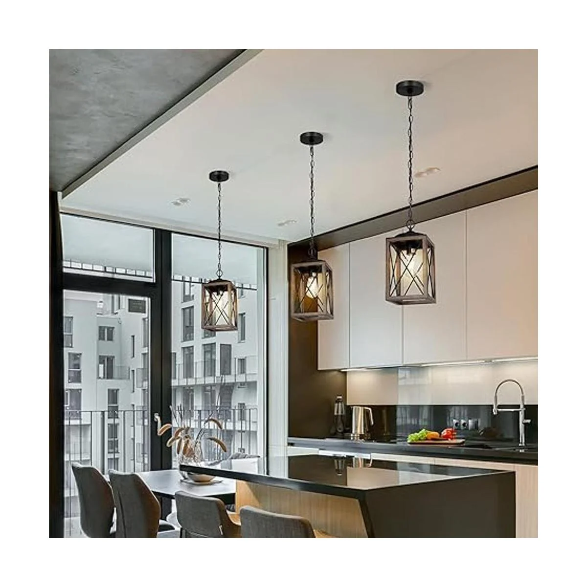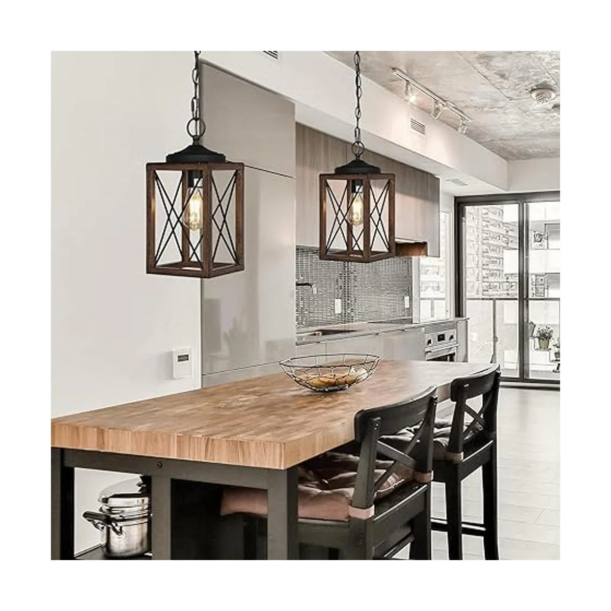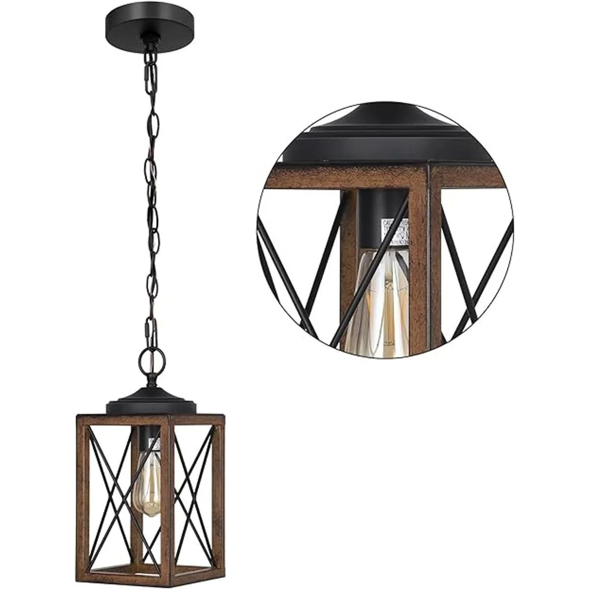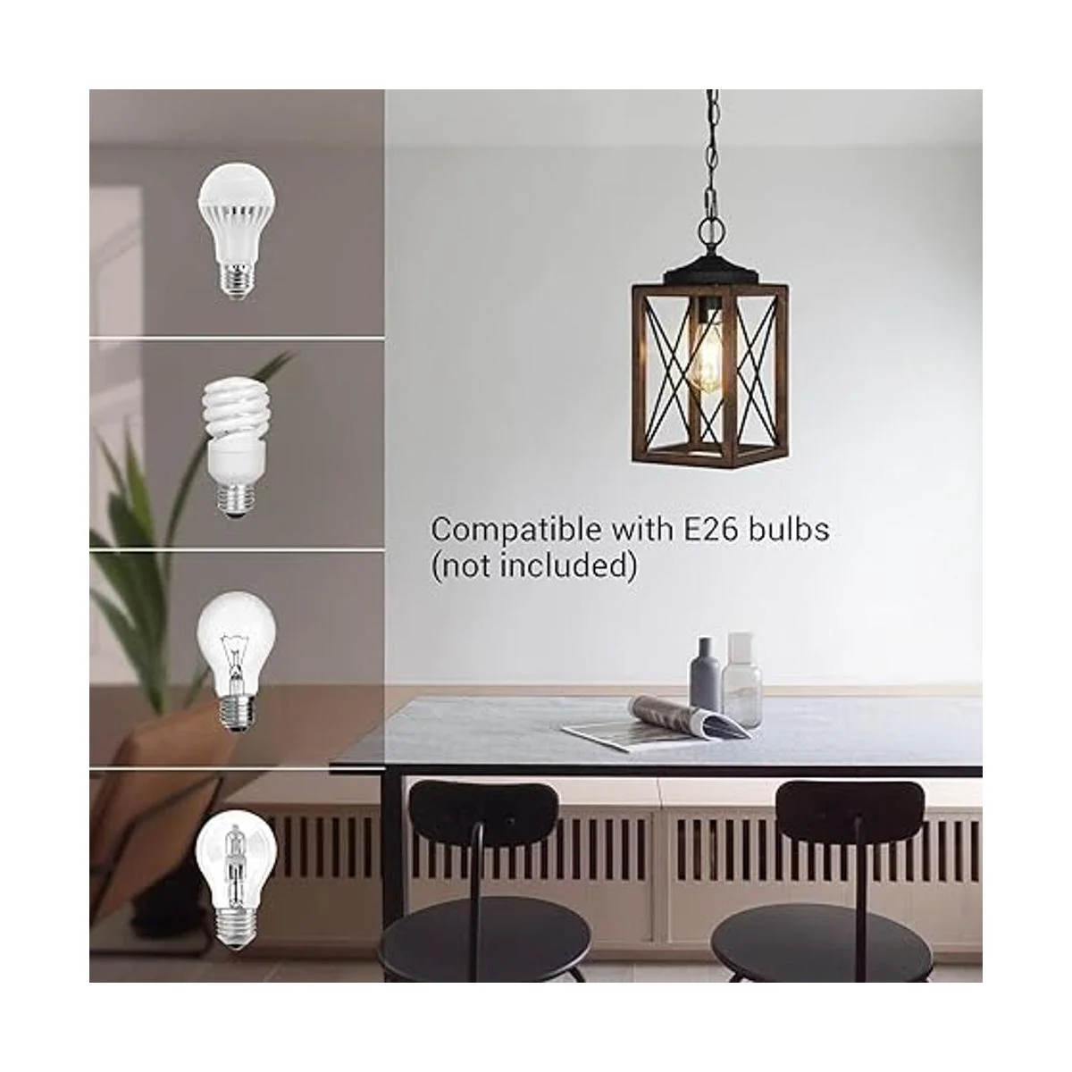 EDISHINE Lámpara colgante de granja, lámpara colgante de metal con acabado de grano de madera, cadena ajustable de 63 pulgadas para techo plano y inclinado, isla de cocina, dormitorio, comedor, base E26, paquete de 1
