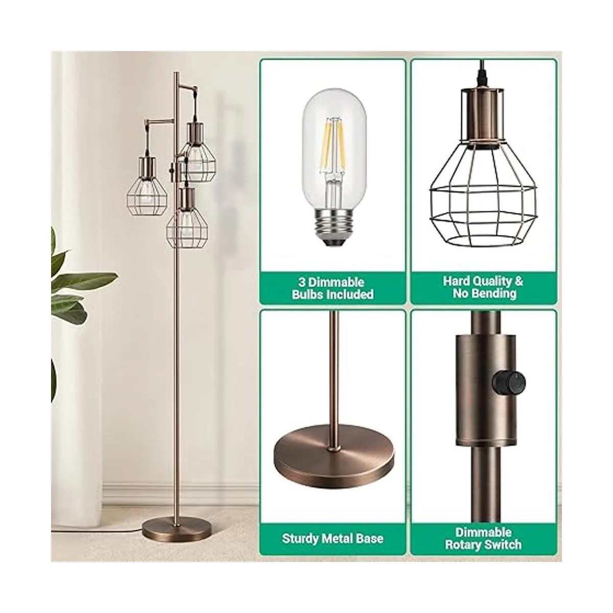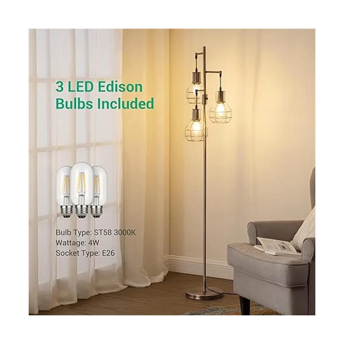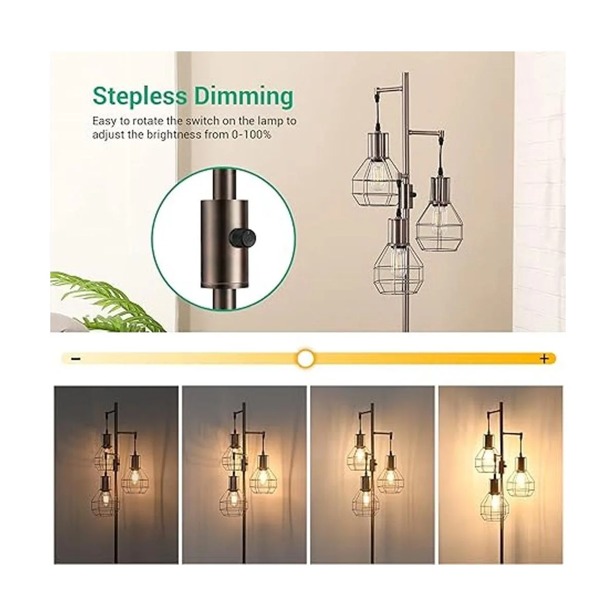 EDISHINE Lámpara de pie industrial regulable, lámpara de pie para sala de estar, dormitorio, 3 bombillas LED incluidas, interruptor giratorio, lámparas de lectura de árbol rústico de 65 pulgadas para sala de estudio, oficina, color marrón