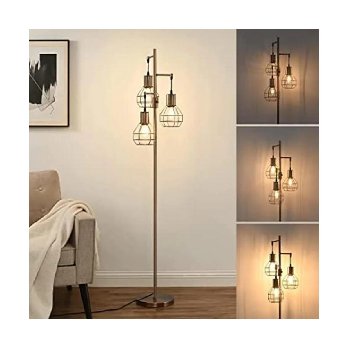 Diseño elegante e industrial: acabado negro, material de metal, 3 elegantes jaulas que añaden un aspecto moderno y moderno a tu hogar. La hermosa lámpara de pie industrial es muy adecuada para cualquier estilo de decoración, como moderno, vintage, minimalista, etc. La lámpara de pie EDISHINE de 3 cabezales es una excelente opción para la decoración de tu hogar