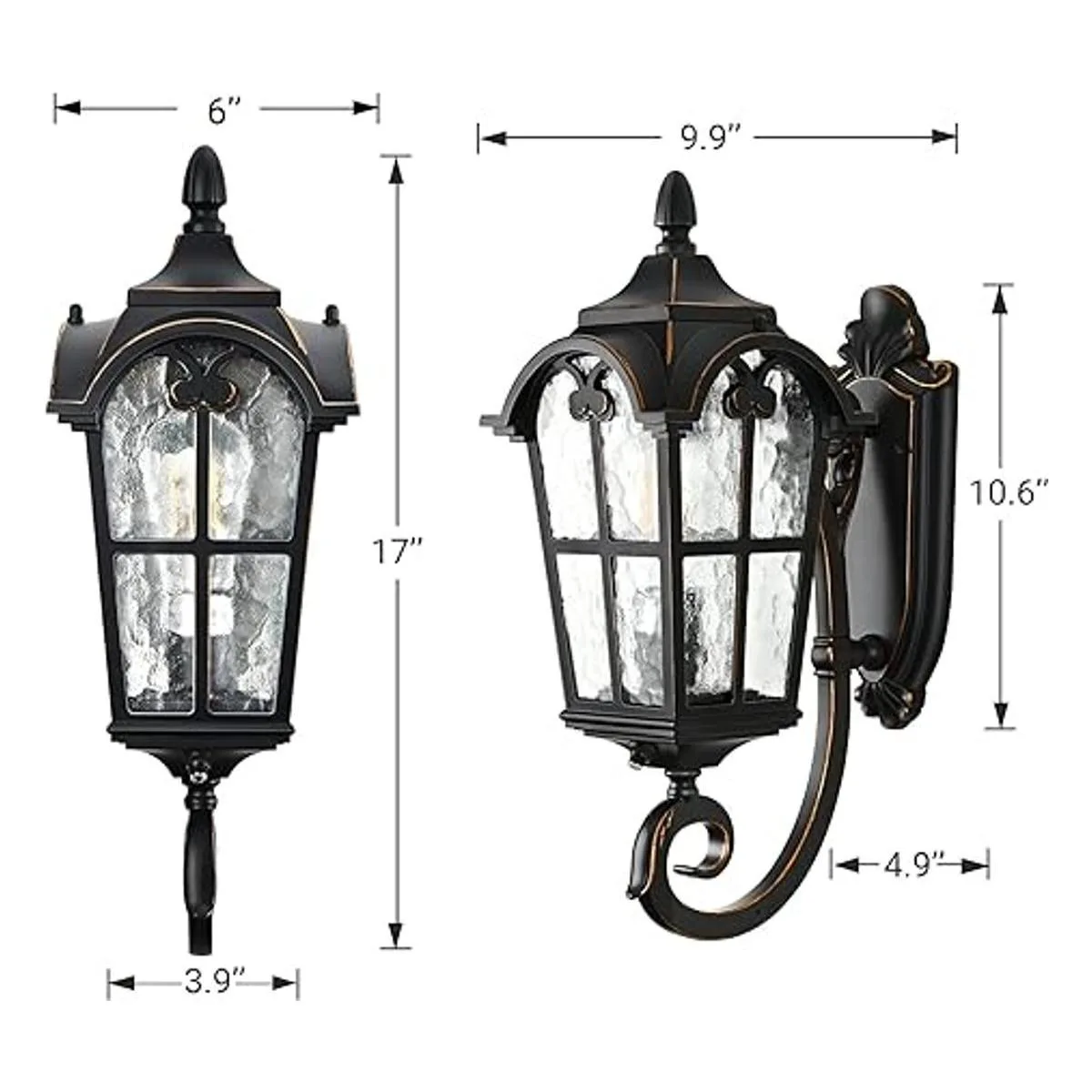 EDISHINE Lámparas de pared al aire libre del atardecer al amanecer, luces romanas negras de 17 pulgadas con vidrio ondulado de agua, aplique de pared impermeable, linterna de pared exterior para porche, garaje, patio, enchufe E26, certificación ETL