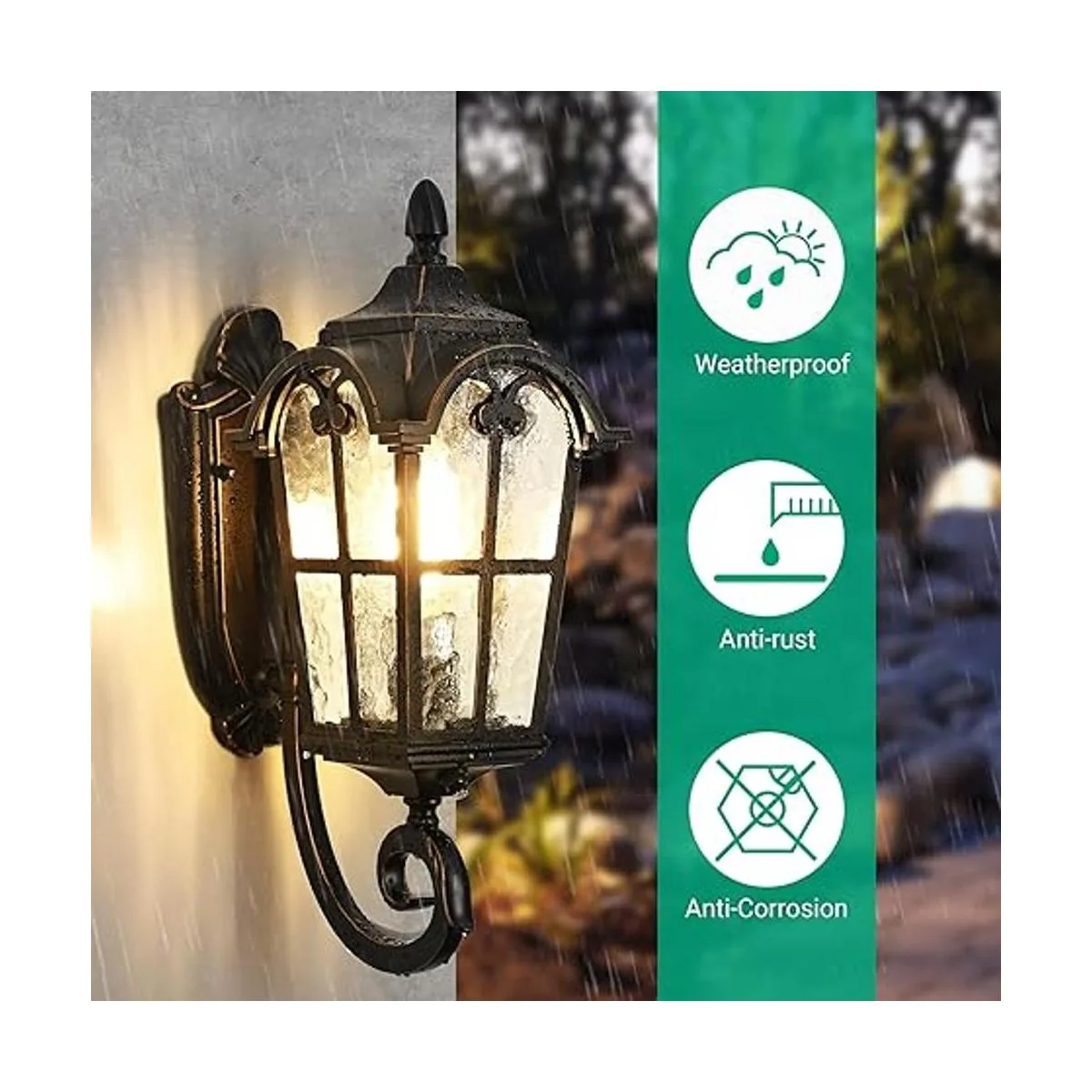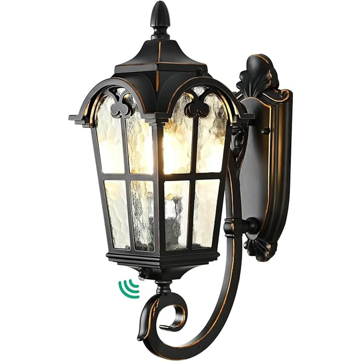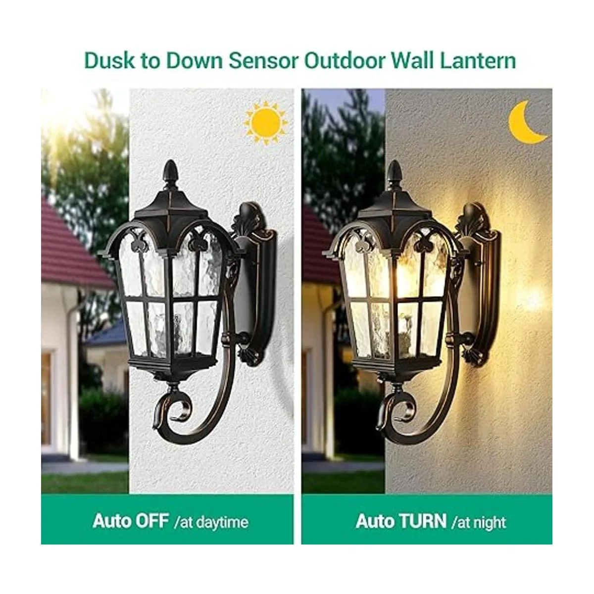 Sensor de atardecer a amanecer: equipado con un sensor de fotocélula para exteriores, esta linterna de pared se ilumina automáticamente al anochecer y se apaga al amanecer al detectar el brillo circundante, no más olvides encenderla o apagar manualmente, ahorrando dinero en tu factura de electricidad, mientras añade más comodidad a tu vida