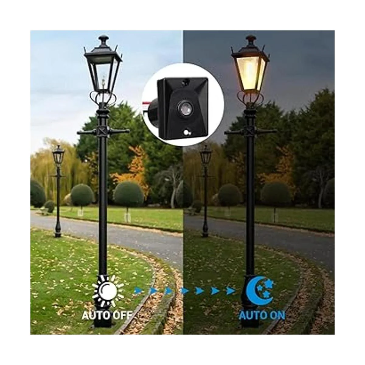 EDISHINE Sensor de luz de poste de lámpara de 120 V, interruptor fotoeléctrico para luz de poste al aire libre, encendidoapagado automático, impermeable, listado por UL