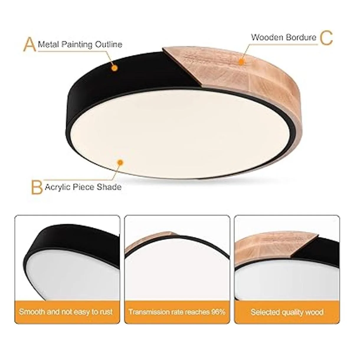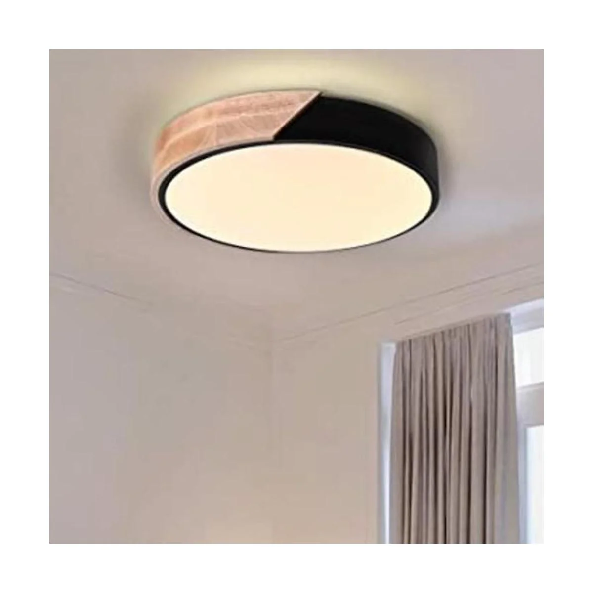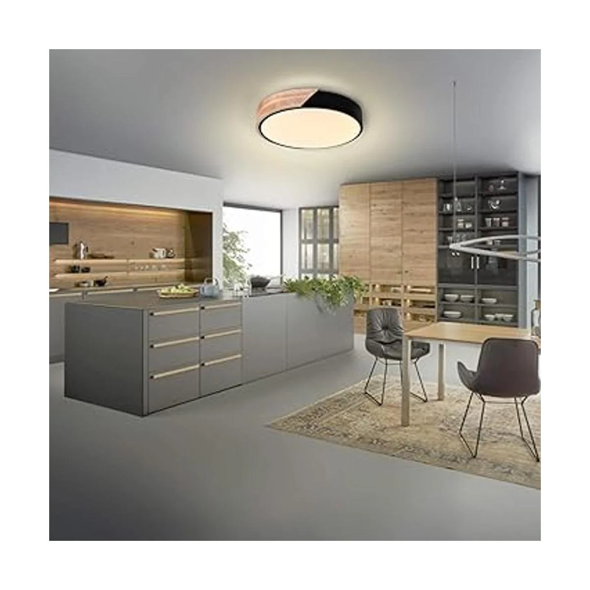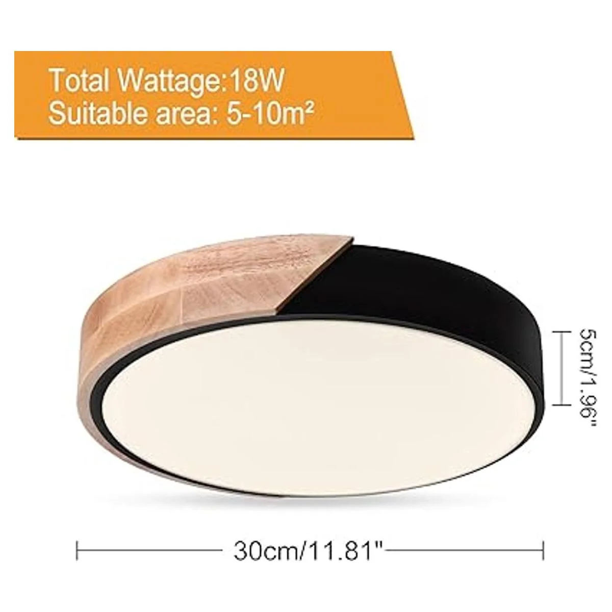 Estilo moderno: la moderna lámpara de techo de forma redonda simple satisface todas las necesidades de diferentes espacios. La lámpara de techo está hecha de madera, metal y pantalla de luz acrílica. La madera natural es única en su textura.