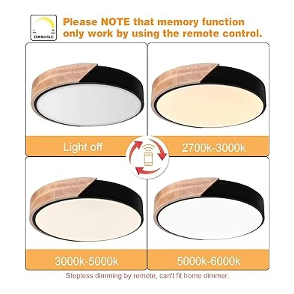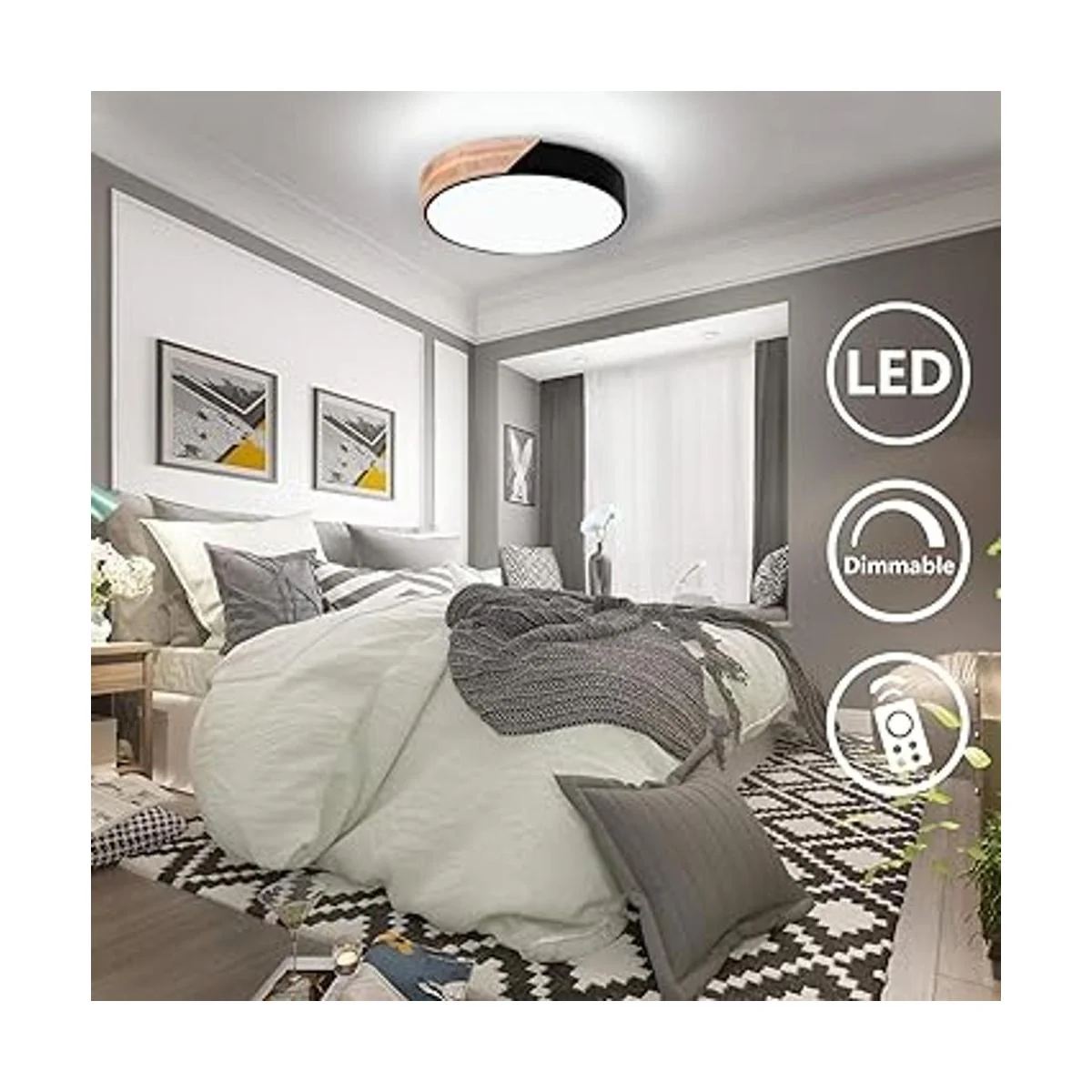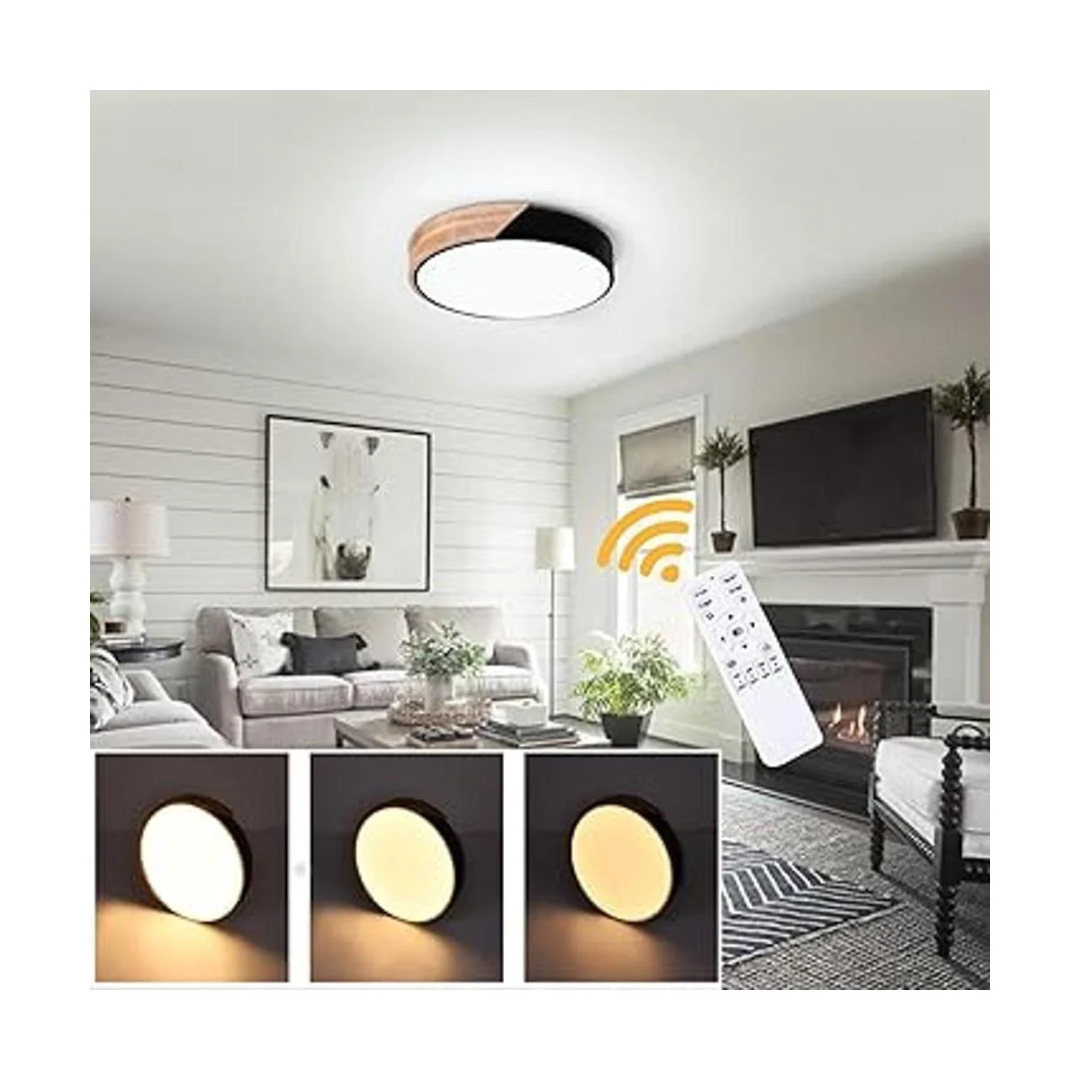 EDISLIVE Lámpara de techo regulable de 11 pulgadas, moderna, minimalista, LED, redonda, madera, metal y acrílico, montaje empotrado con control remoto, color negro
