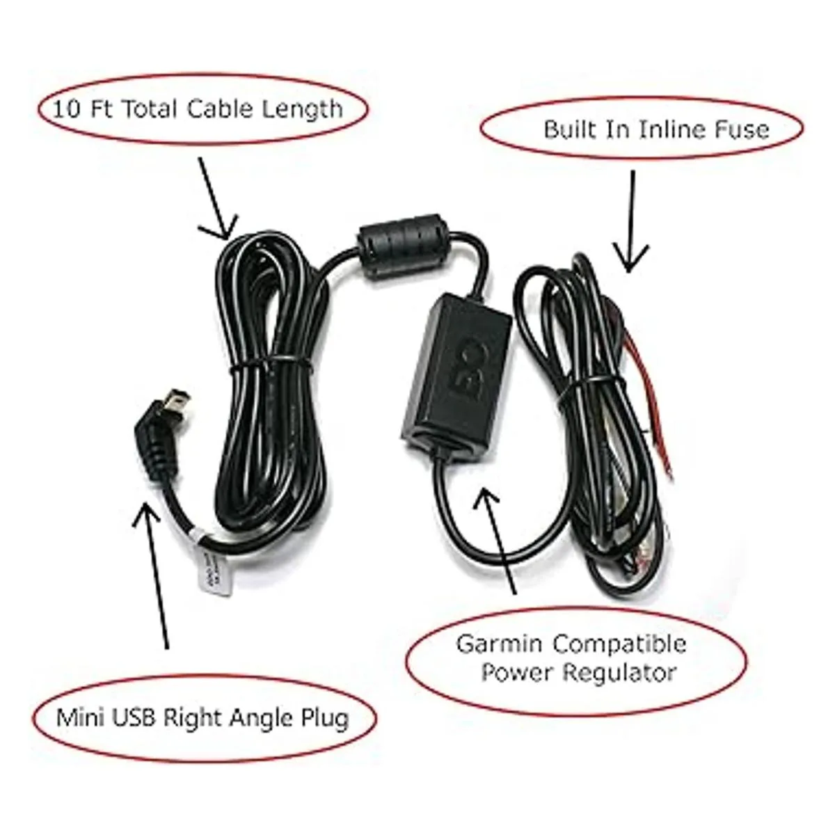 EDO Tech Direct Kit de cable de alimentación USB para Garmin Nuvi 40lm 50lm 52lm 57lm 2597lmt 2595lmt Drive 51lm 52 61 DriveSmart 50 55 61 65 Driveassist 51 LMTs Navigator GPS cable de 10 pies de largo