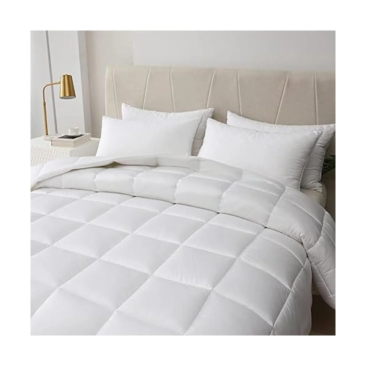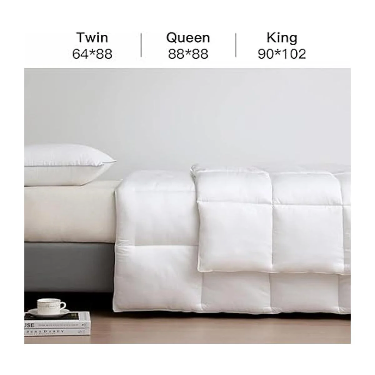Edredón de bambú 100% viscosa de enfriamiento para personas que duermen con calor, relleno de edredón de bambú suave y sedoso, tamaño Queen con 8 pestañas en las esquinas, edredón para todas las estaciones (88 x 88 pulgadas, blanco)