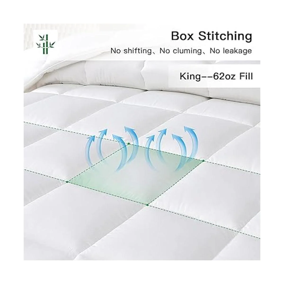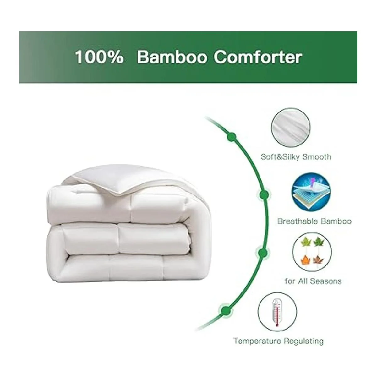 100 bambú Fibras extraídas de bambú, llamado rayón derivado de bambú. Disfruta de un año de comodidad. No necesitas cambiar tu edredón cada temporada. Esta alternativa al edredón eiderdown está diseñada para refrigeración y calefacción y se puede utilizar en todas las estaciones.
