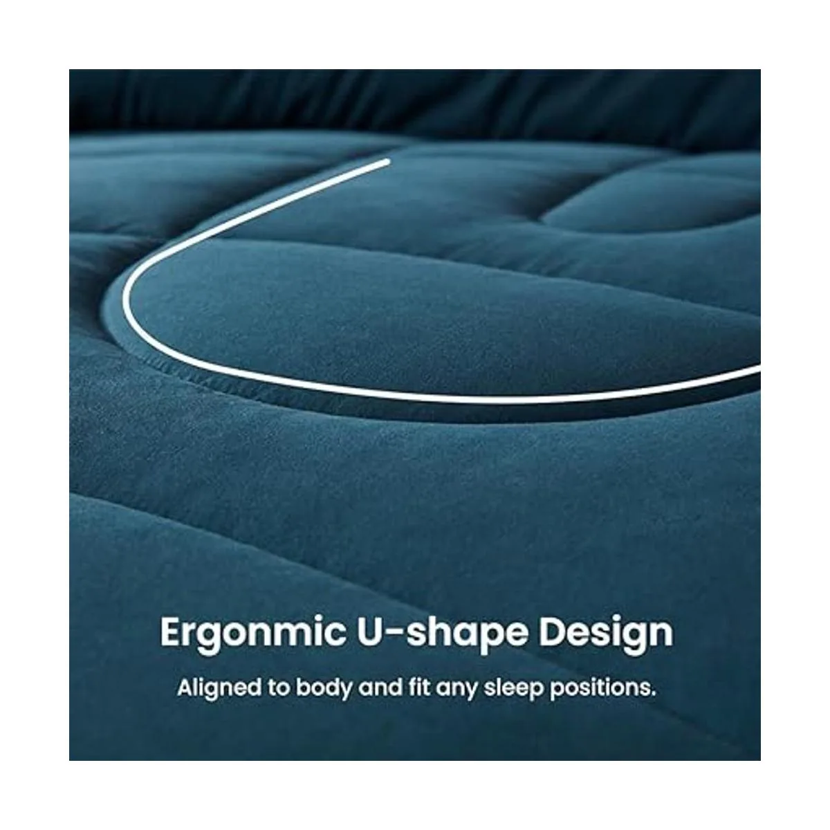 Diseño ergonómico y en forma de U. Después de muchas pruebas simuladas de sueño, finalmente adoptamos este diseño acolchado en forma de U, que puede ajustarse estrechamente a las curvas del cuerpo humano, independientemente de si se duerme de lado, de espaldas o de estómago. Una exclusiva costura de caja diseñada para mantener el relleno bien distribuido y evitar cualquier desplazamiento y aglomeración. El relleno extra en 4 lados puede proteger firmemente el ambiente de sueño y evitar el aire frío. Acoge el calor y deja que todas tus preocupaciones se desvanezcan mientras duermes en paz.