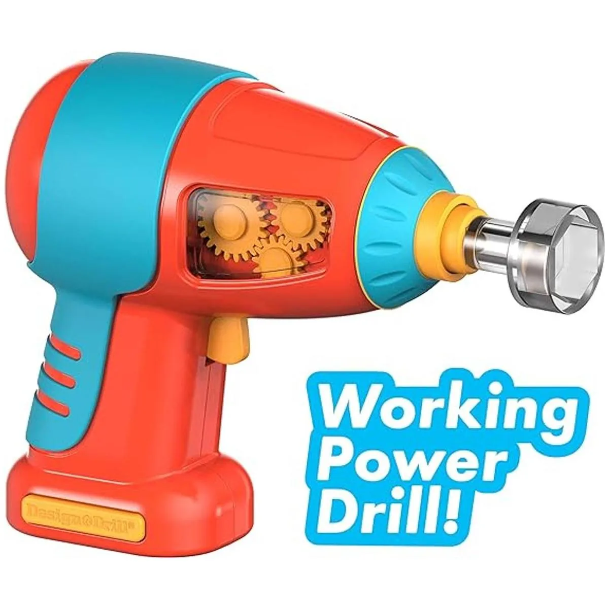 Divertido y sostenible: taladro eléctrico apto para niños, cuerpo de camión con contenedor de almacenamiento y cubo, 4 ruedas, 18 pernos, 2 figuras de Bolt Buddy, paquete ecológico que se despliega en un juego. El taladro requiere 2 pilas AA no incluidas. Patente de taladro No. US D929,837.