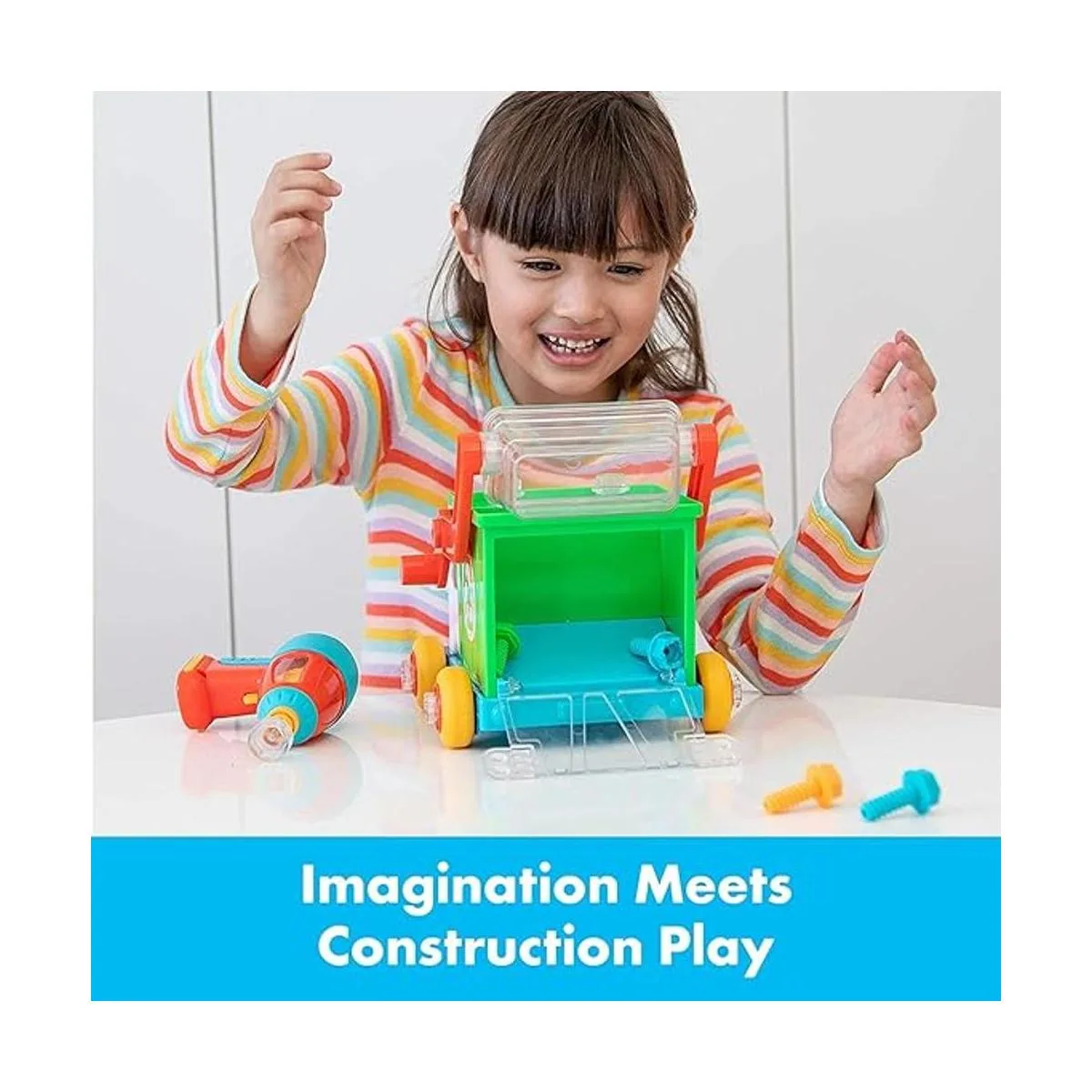 Introduce el aprendizaje STEM: el camión de reciclaje Design Drill Bolt Buddies apoya el aprendizaje STEM, introduciendo los principios de la ingeniería básica a través del juego de construcción