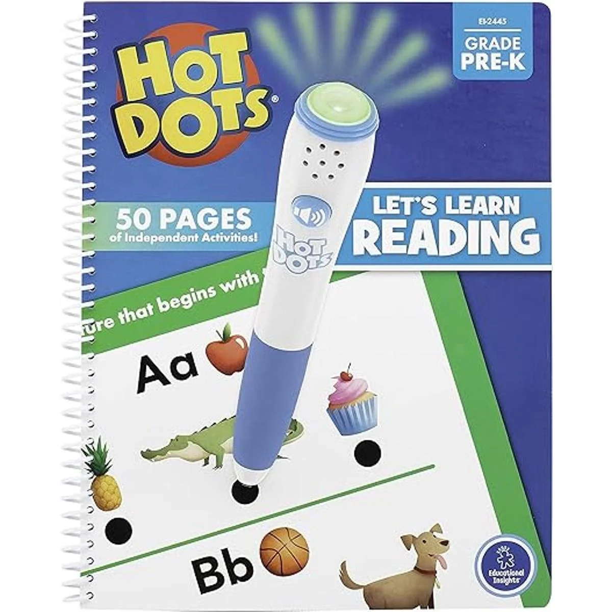 Educational Insights Hot Dots Lets Learn PreK Reading Aprende a leer libro de trabajo preescolar, a partir de 3 años