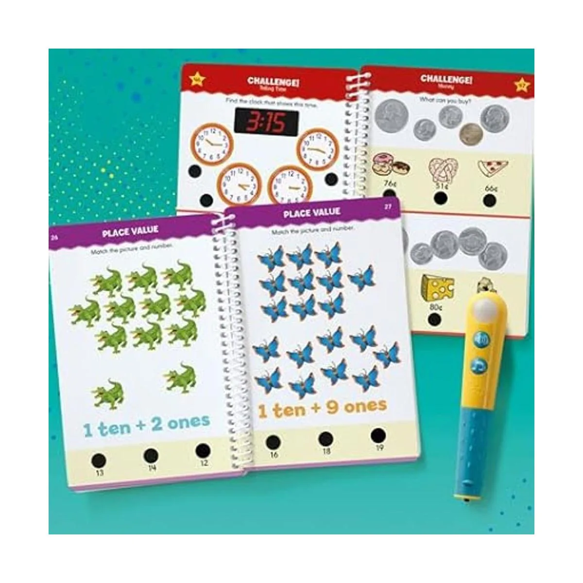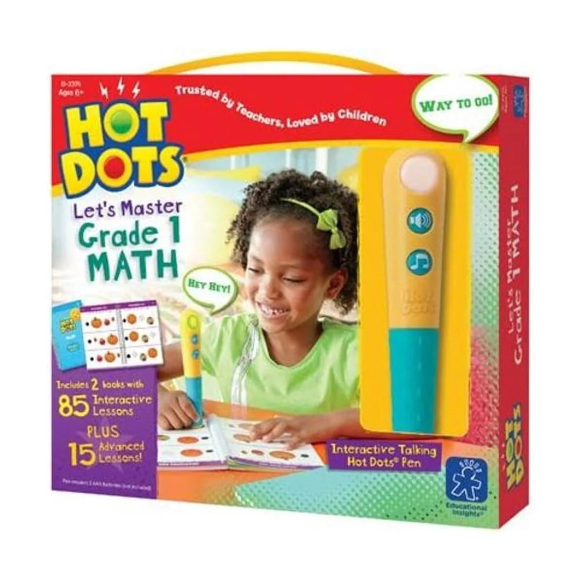 Educational Insights Hot Dots Lets Master Juego de matemáticas de 1er grado, libros de trabajo de matemáticas, 2 libros y bolígrafo interactivo, 100 lecciones de matemáticas, a partir de 6 años