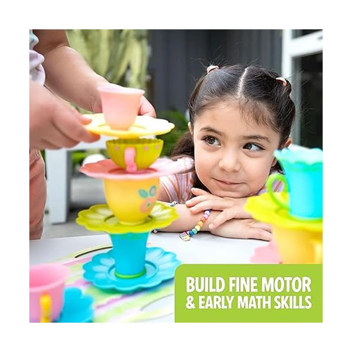 Juego de secuencia preescolar: puedes apilar una torre de tazas de té en tu platillo sin volcarte ni volcar Sé el primero en construir y completar tu torre correctamente para ganar esta carrera de relés real