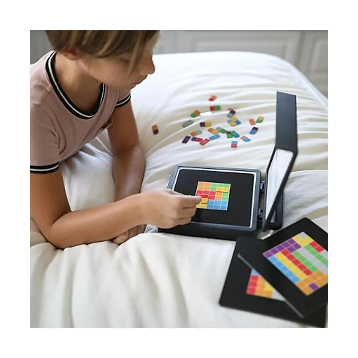 Cómo jugar: selecciona una carta de desafío y colócala en la funda. Luego, utiliza piezas magnéticas de dos tonos para recrear el rompecabezas, asegurándote de que ambos extremos de la pieza coincidan con la tarjeta del rompecabezas