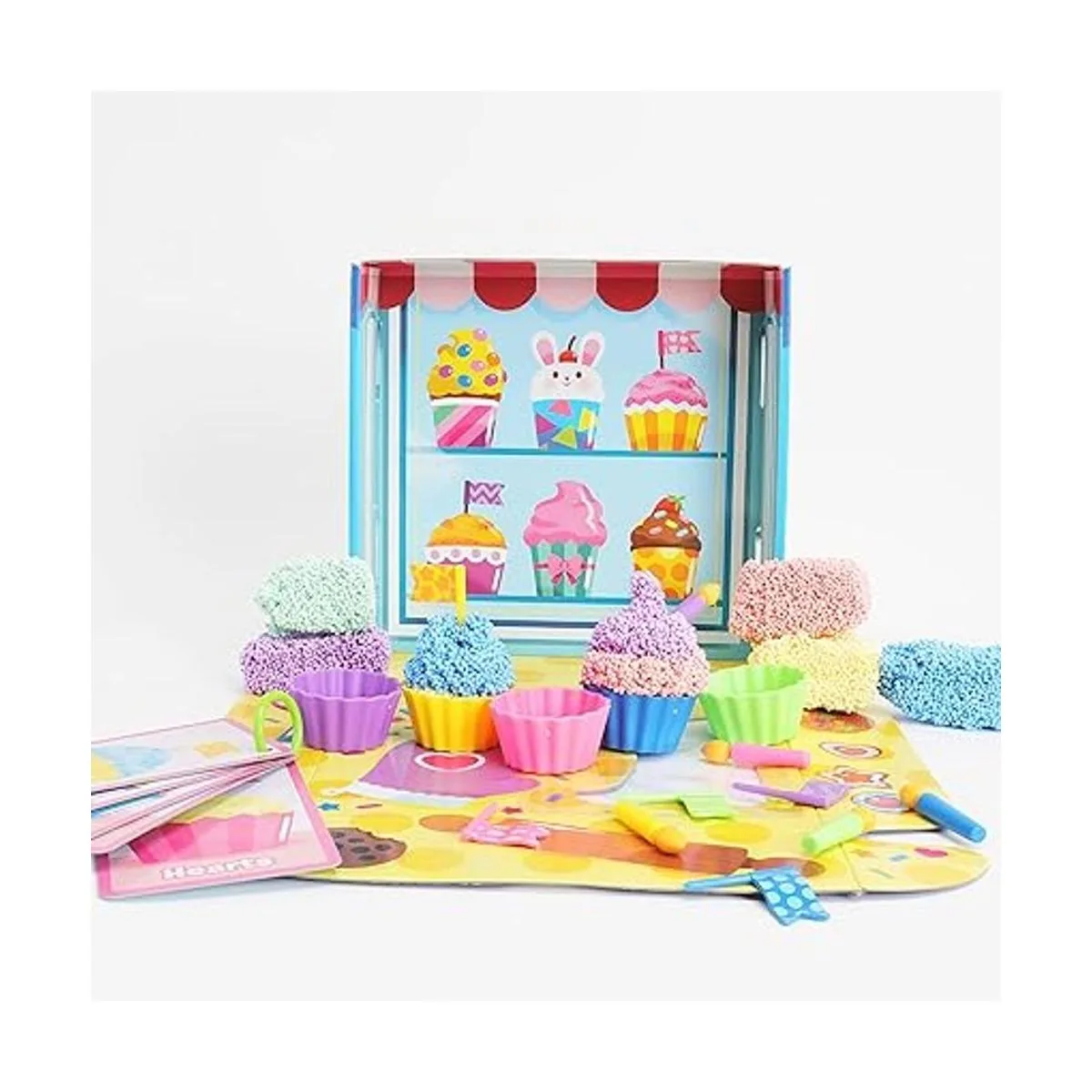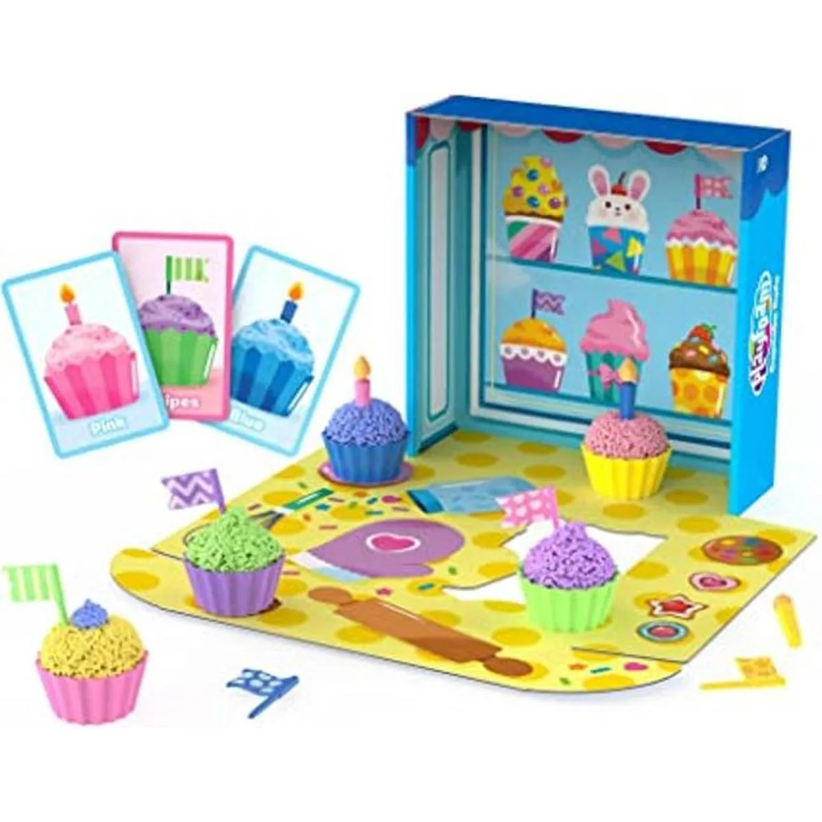 Juega una y otra vez: Playfoam no tóxico nunca se seca para que la diversión y el aprendizaje nunca terminen. Incluye cinco ladrillos de espuma de juego, cinco envoltorios de plástico para cupcakes, cinco decoraciones para cupcakes, cinco velas de plástico, cinco tarjetas de pedido de doble cara, guía de juego y juego de cupcakes completo con alfombrilla de juego funciona como embalaje
