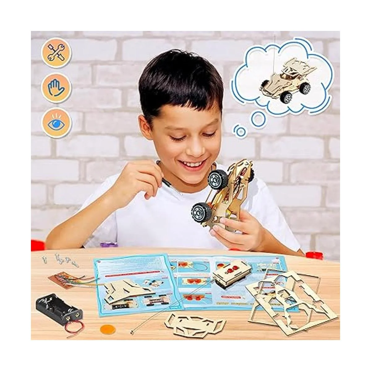 Tiempo de espectáculo de ingeniero. El kit Science incluye todas las piezas para construir un coche con mando a distancia. De acuerdo con las instrucciones detalladas paso a paso, tus hijos pueden realizar sus sueños de ingeniero