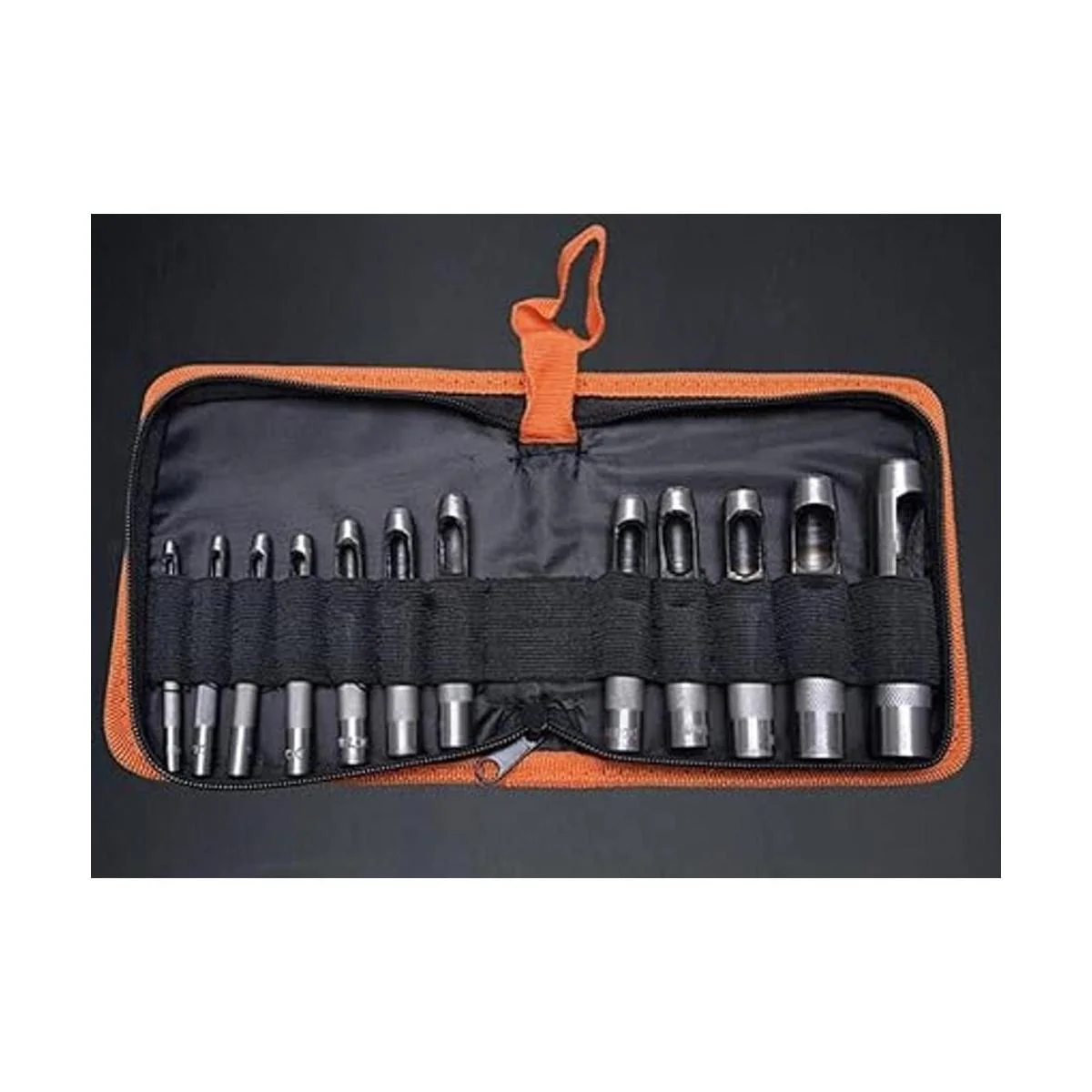 Edward Tools Harden Pro Juego de 12 perforaciones de acero CRV de alta resistencia, organizador de cremallera y herramientas de perforación para cuero, junta, amoladora, tela, tamaños pequeños a grandes