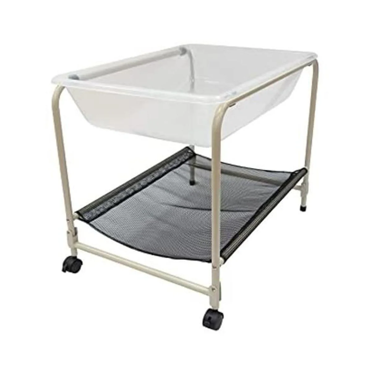 edxeducation Bandeja de agua y soporte para escritorio, suministros de escuela en casa para juego sensorial, 23 pulgadas de alto, mesa de arena y agua, ruedas con cerradura y estante