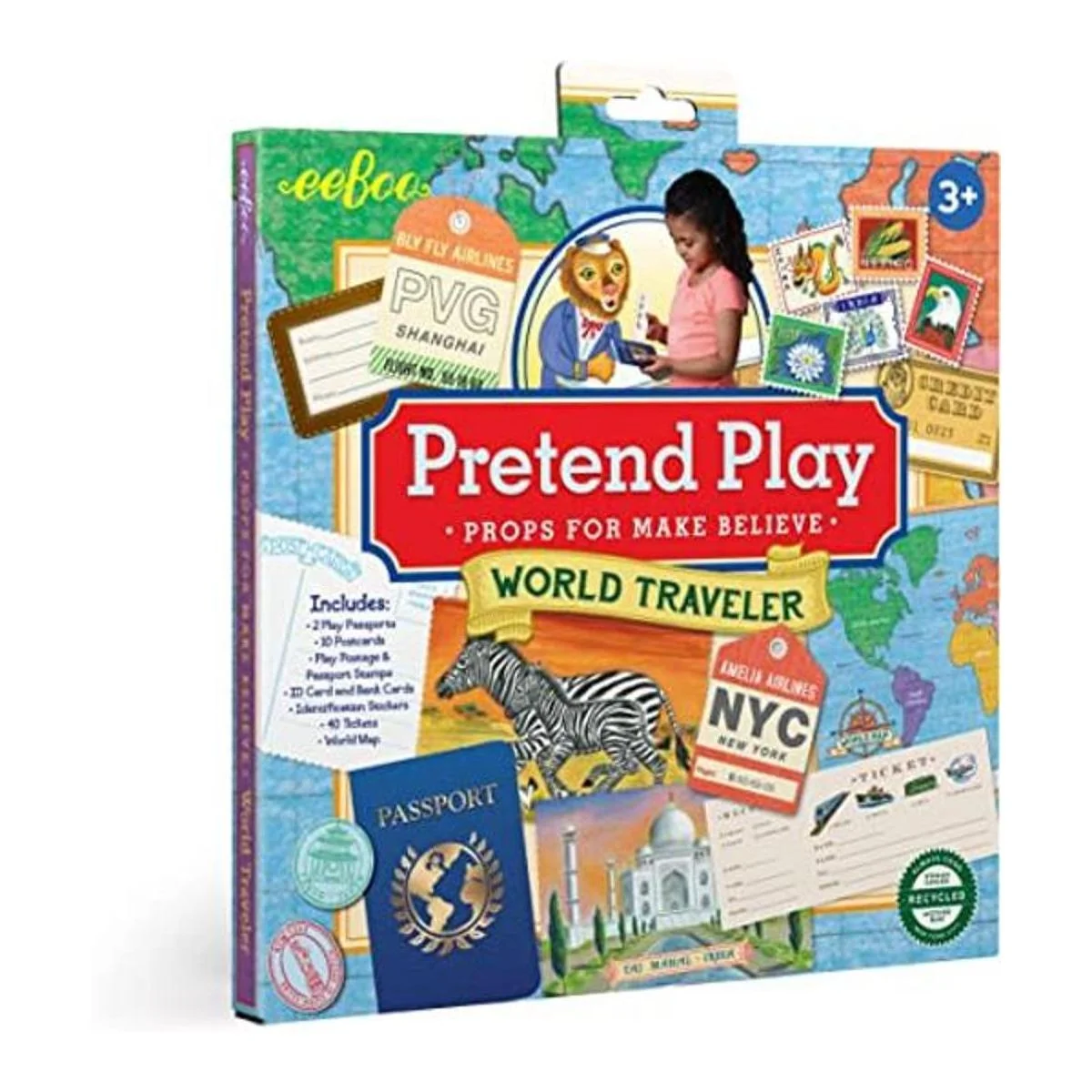 El juego de actividades World Traveler Pretend Play proporciona todos los accesorios para una aventura alrededor del mundo o simplemente para el vecindario.