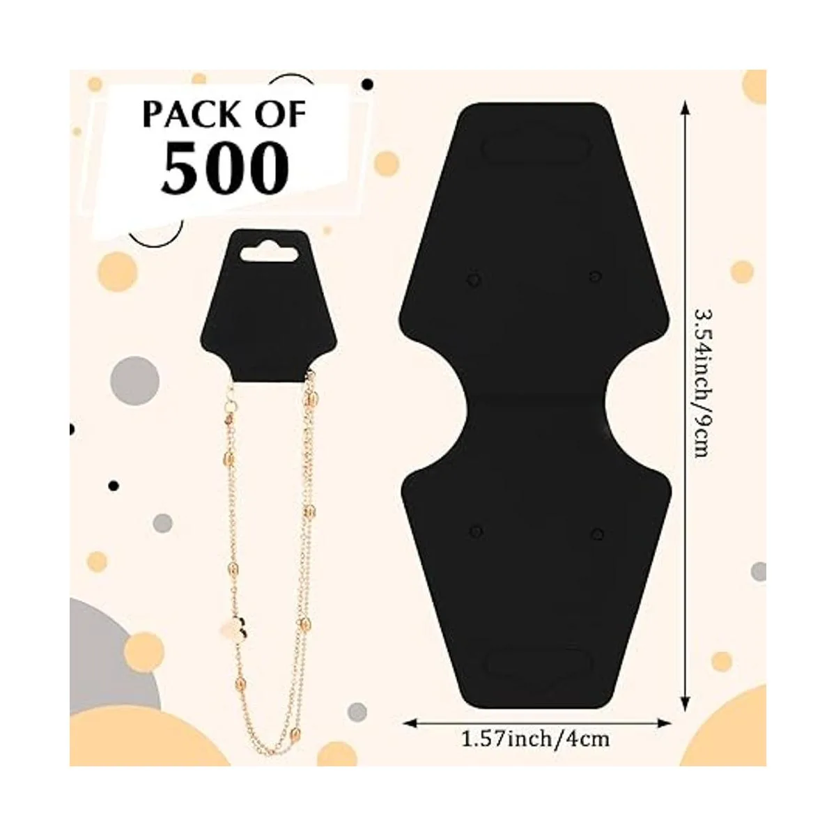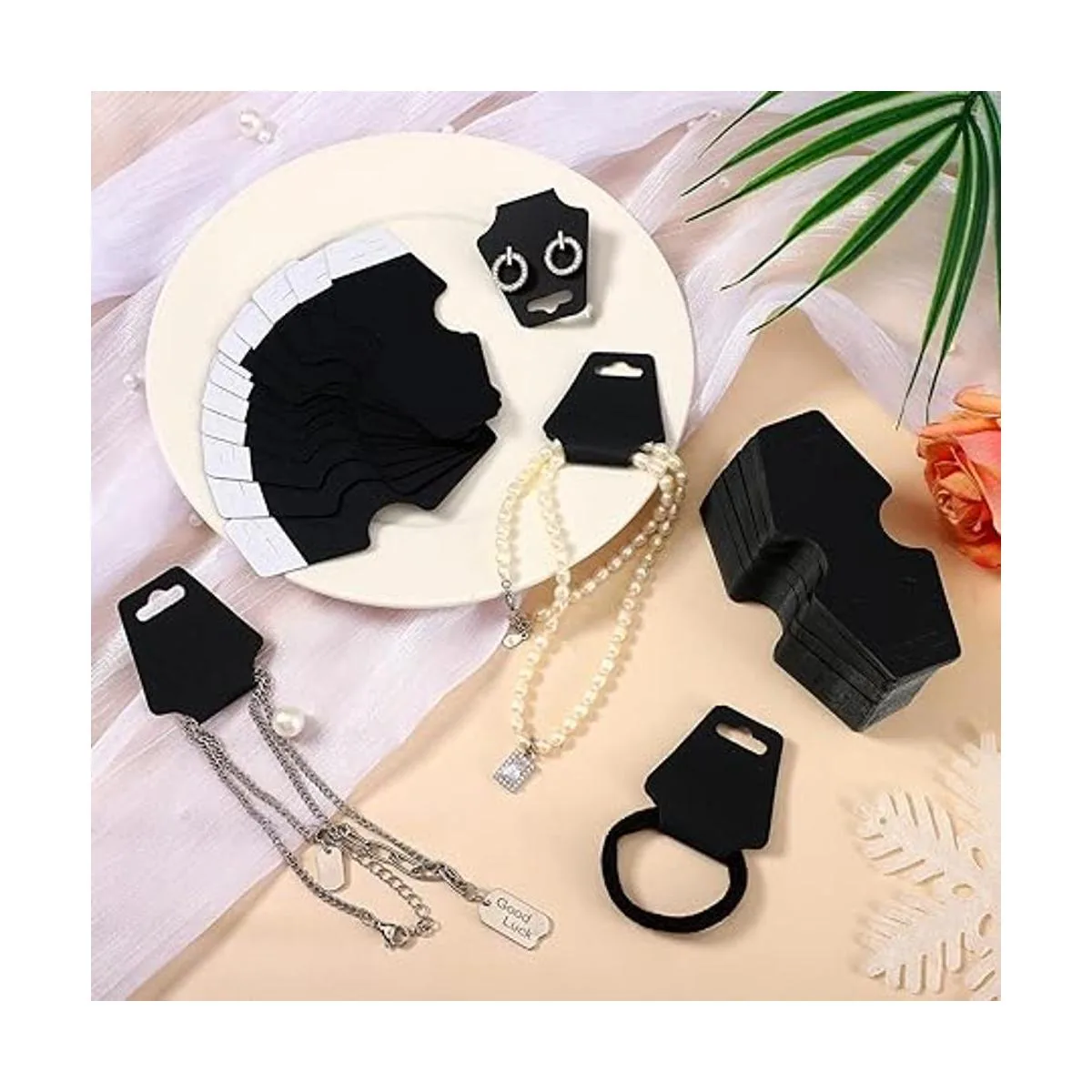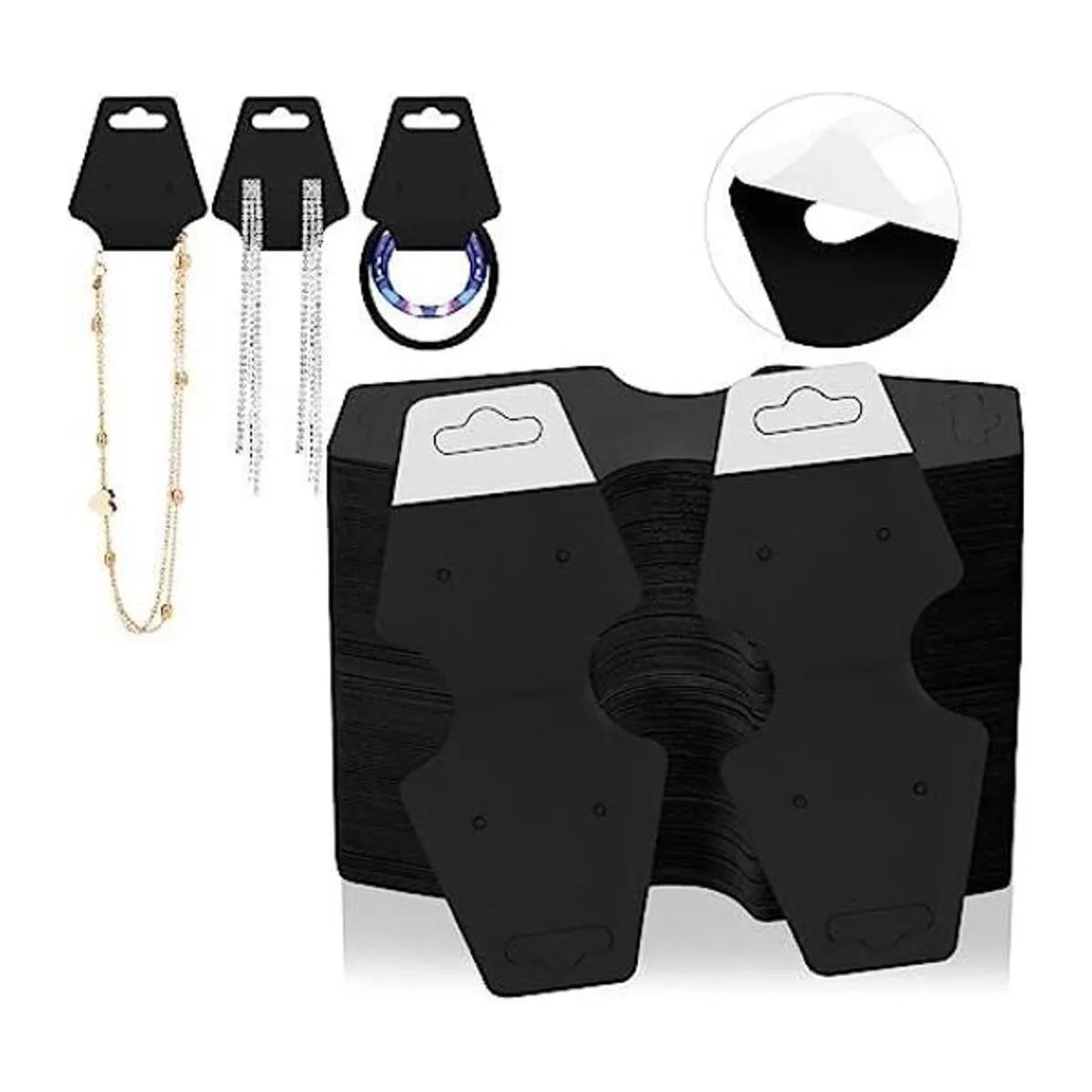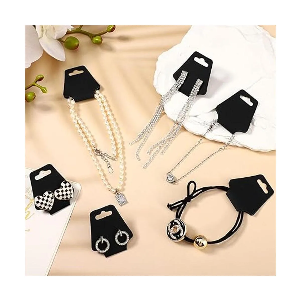 Eersida 500 tarjetas de exhibición de collares, tarjetas adhesivas de embalaje de joyas, llavero de estraza para colgar tarjetas, tarjetero para gargantilla, aretes, banda para el pelo, exhibición de suministros para pequeñas empresas negro