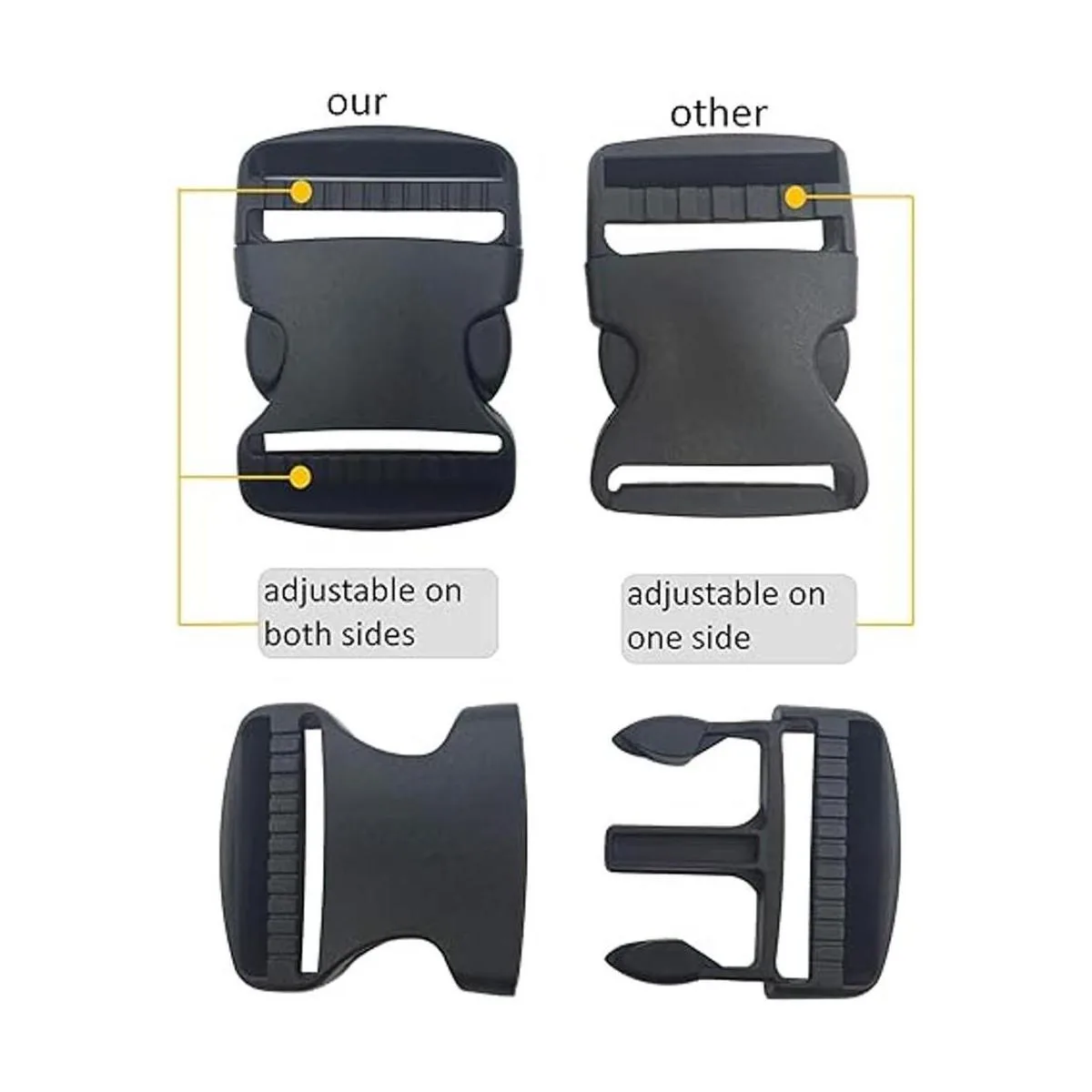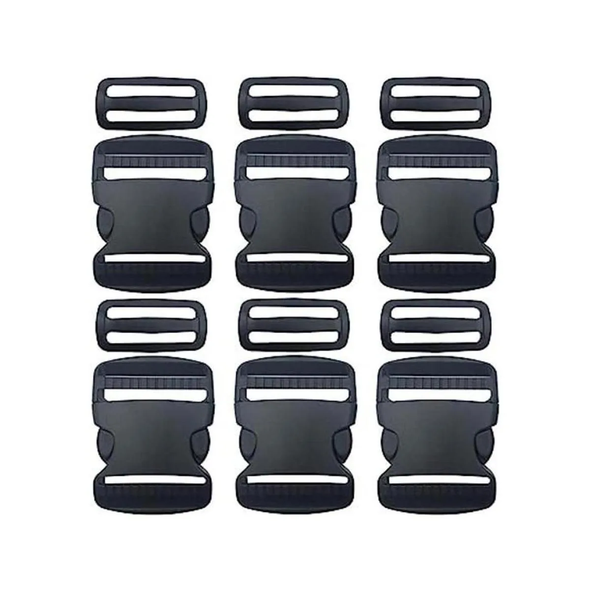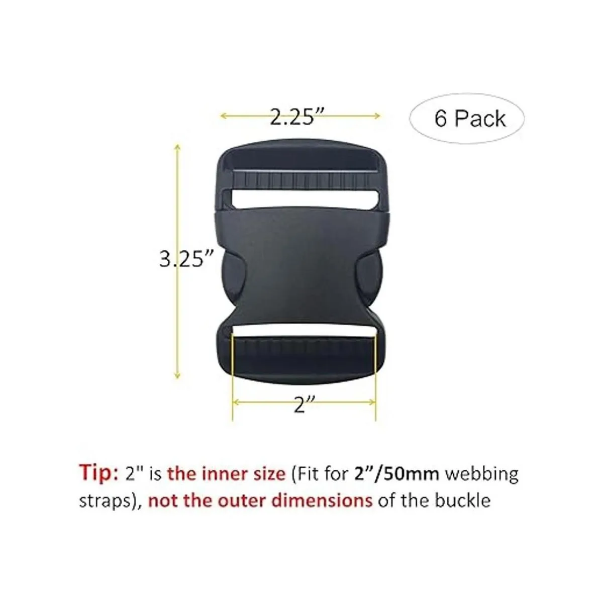 EesTeck Juego de 6 hebillas de plástico de liberación rápida y doble ajustable de 2.0 in 2.0 in, cierre rápido, para correas de 1.969 in, color negro