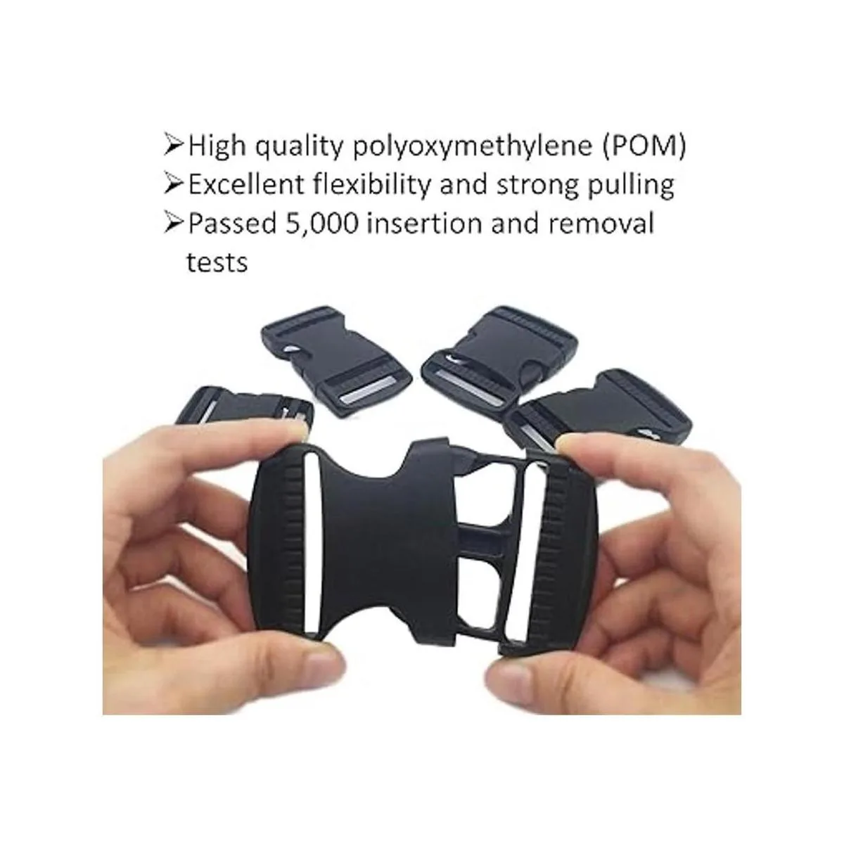Alta calidad: las hebillas de polipropileno cuentan con una excelente flexibilidad y resistencia, más gruesas y más duraderas que las hebillas estándar. Ha pasado 5.000 pruebas de inserción y extracción.