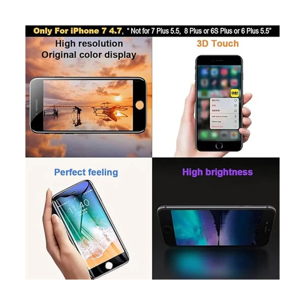 Compatibilidad y aplicación: el reemplazo de pantalla LCD del iPhone 7 solo es compatible con iPhone 7, 4.7 pulgadas, modelo A1660, A1778, A1779. No para iPhone 7 Plus, 6, 6S u 8. No incluye el botón de inicio, la cámara frontal y los componentes del auricular y los sensores, así que cámbialos desde tu pantalla anterior. Con perspectiva completa, amplia gama de colores, se puede utilizar con gafas de sol. Se utiliza para reemplazar la pantalla agrietada, defectuosa, muerta, rota, problemas de respuesta táctil, píxeles anormales, LCD mal funcionamiento.