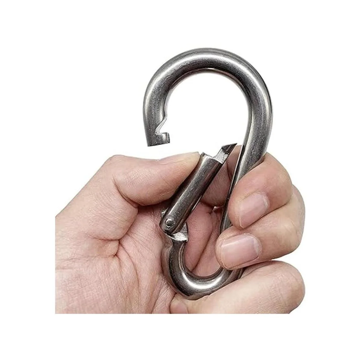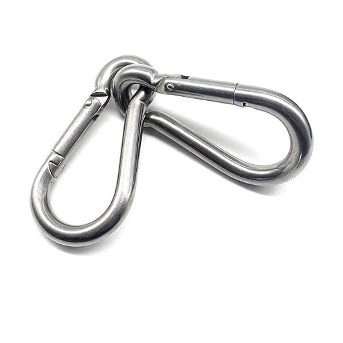 EFFIET Mosquetón de acero inoxidable de 3.15 pulgadas y 4 pulgadas para conexión de equipos de gimnasio, clips de resorte resistentes para ejercicio de gimnasio, sacos de boxeo, pesca, senderismo, camping