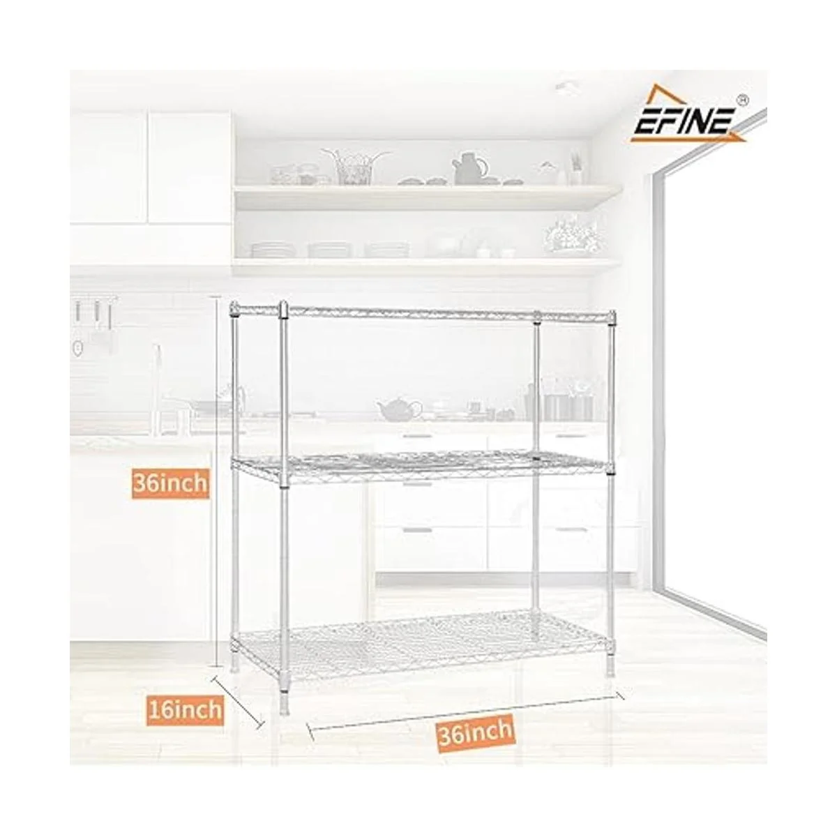 EFINE Estantería cromada de 3 estantes con forros de 3 estantes, estante ajustable, estantes de alambre de acero, estanterías y almacenamiento para cocina y garaje 36 pulgadas de ancho x 16 pulgadas de profundidad x 36 pulgadas de alto