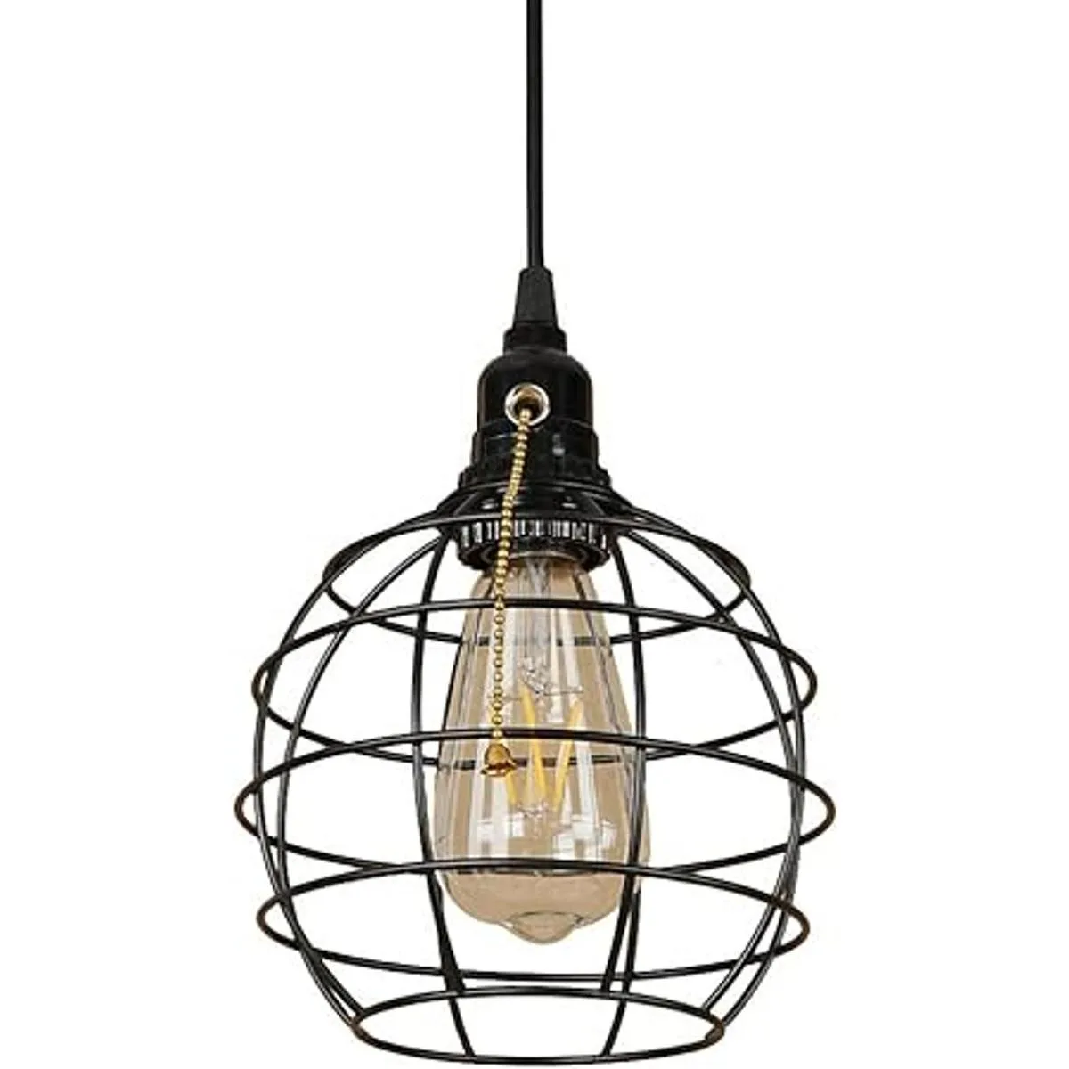 EFINEHOME 1 lámpara colgante de luz con enchufe de cable de 15 pies con interruptor de encendidoapagado con cadena de tracción, luz colgante de jaula vintage industrial negra globo de parabrisas