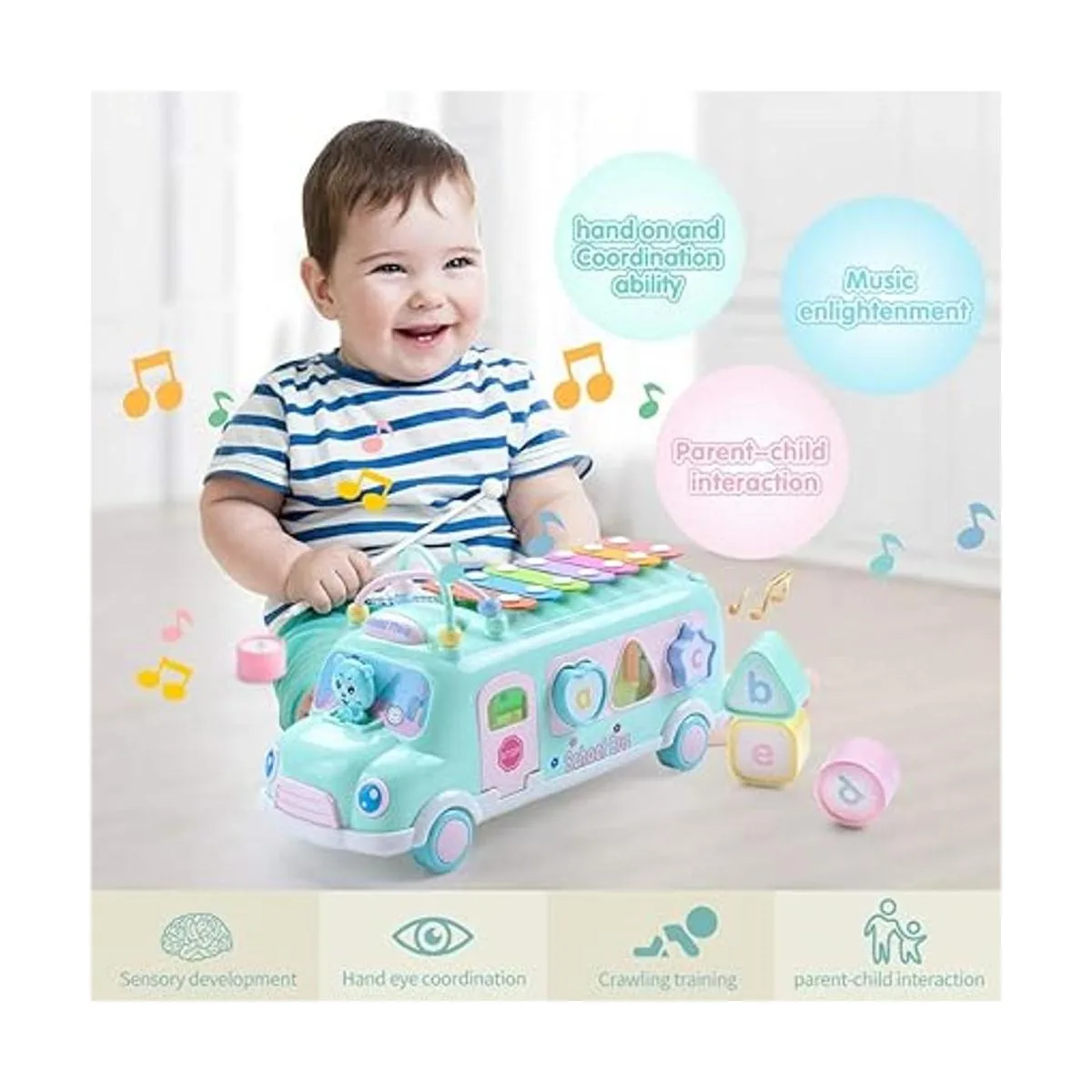 Juguete educativo para niños tempranos: el autobús escolar se enorgullece de presentar este nuevo autobús innovador que mejorará el aprendizaje y el desarrollo de un niño de una manera divertida. Puede dejar que la curiosidad del bebé se lleve a desarrollar su capacidad de exploración, es útil para la actividad de imitación de tu bebé, acción sutil, desarrollo visual, desarrollo cognitivo.