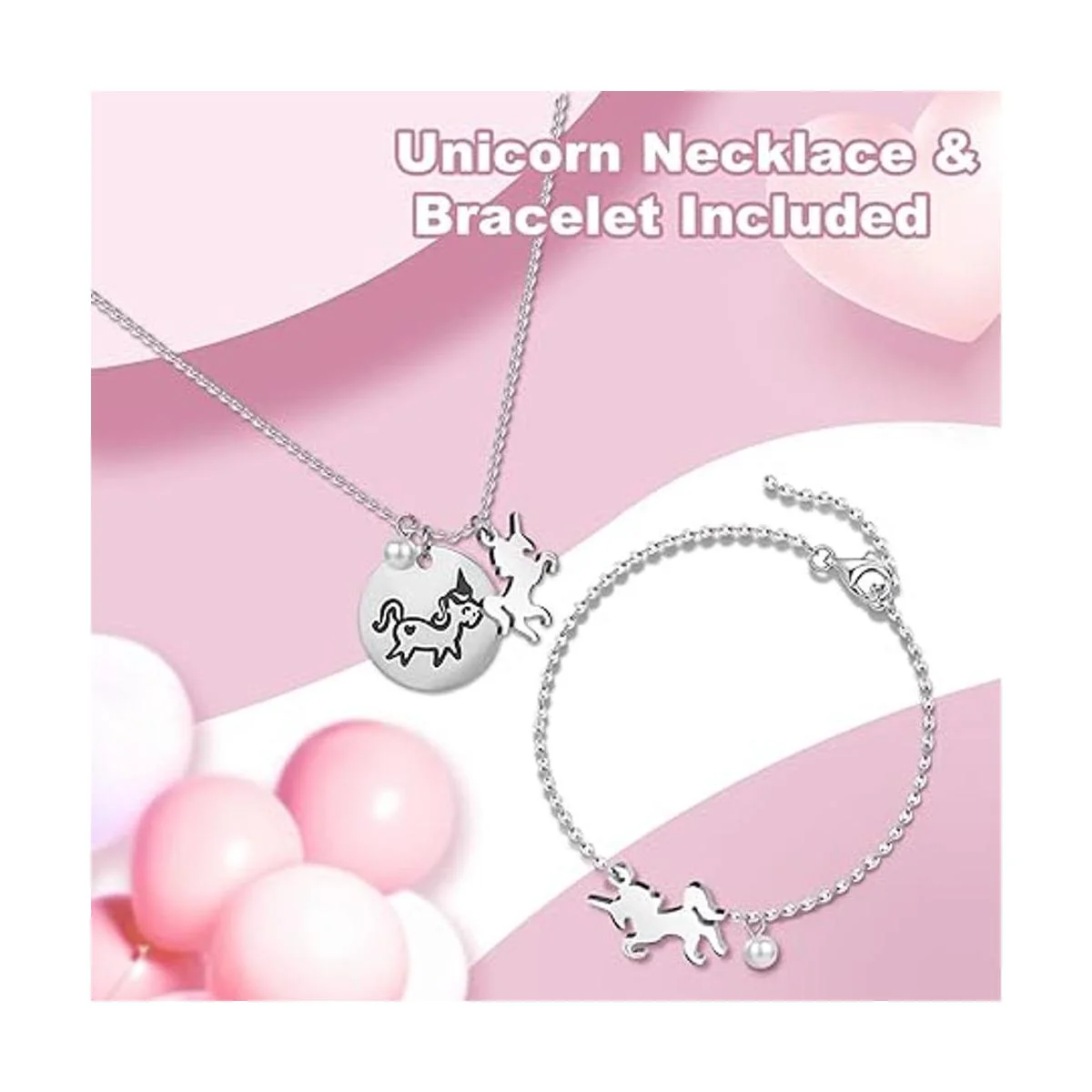 Juego de joyas incluido: este joyero de música también incluye una pulsera de unicornio ajustable y un collar de unicornio, se puede dar a tu niña en cumpleaños o vacaciones. Con las joyas para niñas pequeñas metidas en el interior, no tendrás que seguir buscando algo más ni dar una caja de regalo vacía