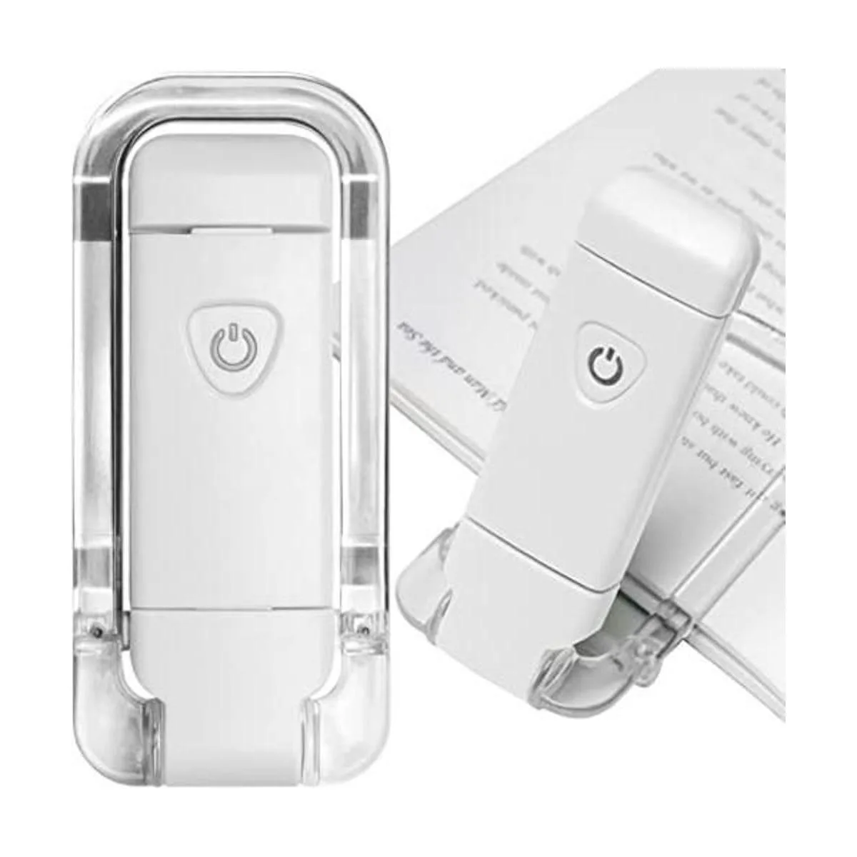 EGWASER Luz de lectura de libros, luz LED portátil recargable por USB con clip para leer en la cama, 3 luces de marcador regulables ajustables para protección ocular, lámpara de lectura para gusanos de biblioteca blanco